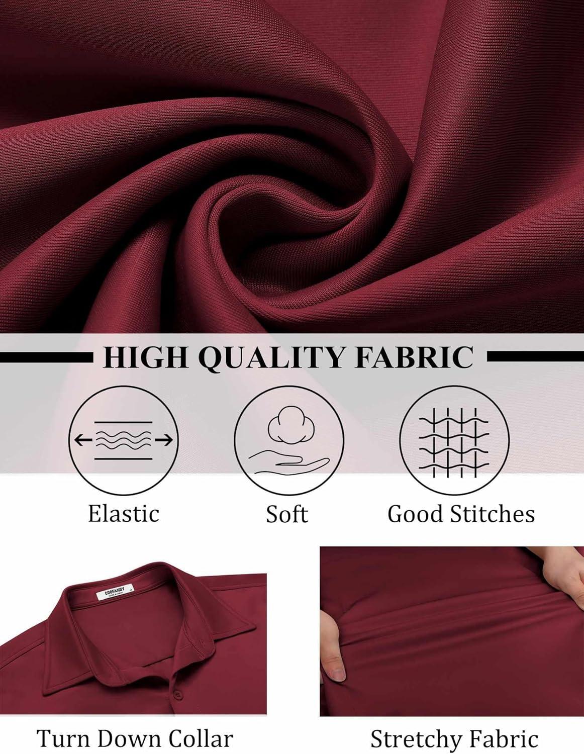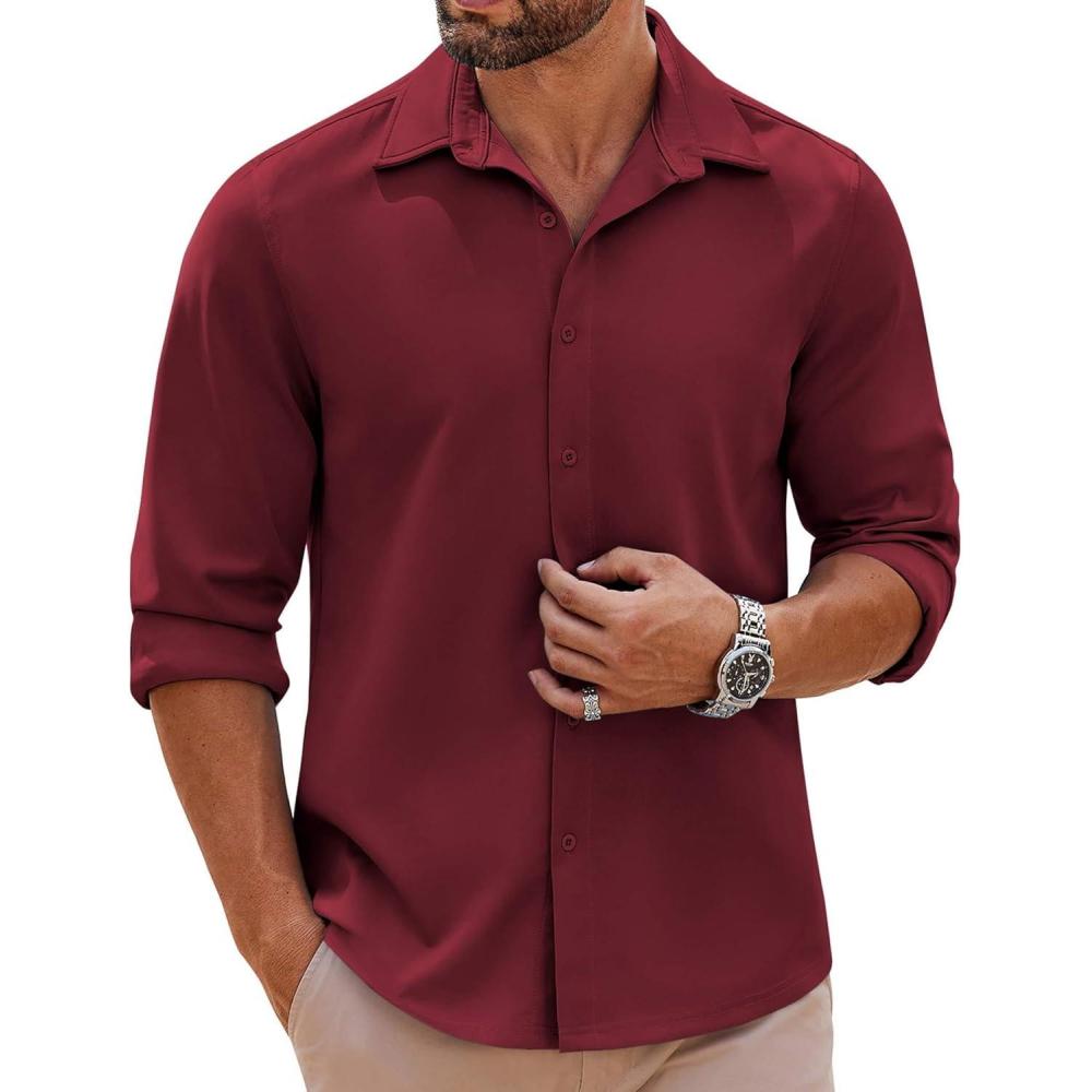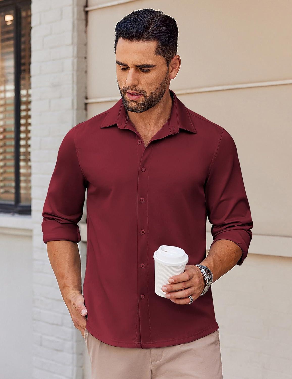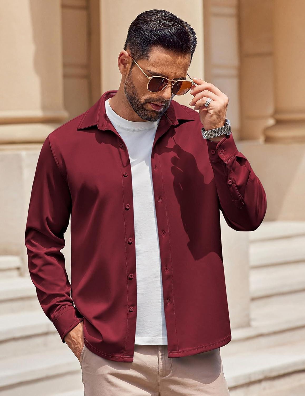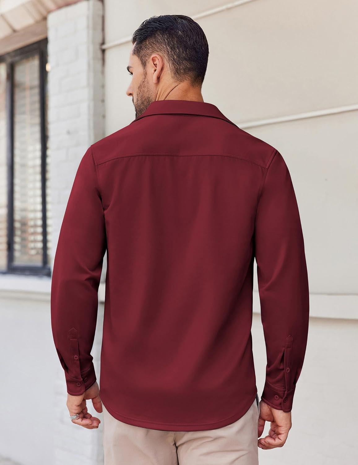 COOFANDY Mens Long Sleeve Button Down Shirts Casual Untucked Shirts Stretch Shirts(Wine Red)