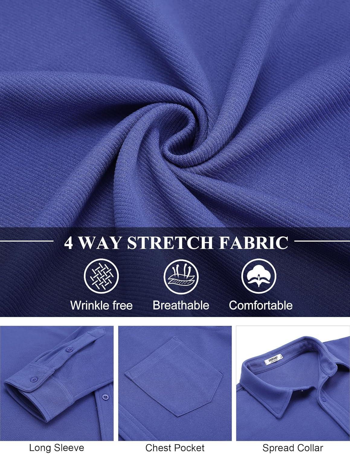 COOFANDY Mens Long Sleeve Button Down Shirts Wrinkle Free Shacket Jacket Stretch Casual Overshirt(Deep Blue)