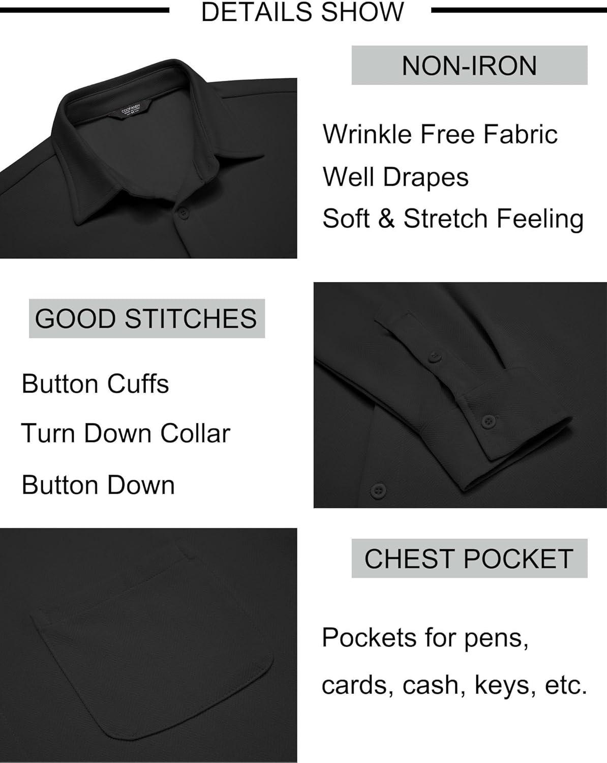COOFANDY Mens Long Sleeve Button Down Shirts Wrinkle Free Untucked Shirts Casual Dress Shirt for Men(Black)