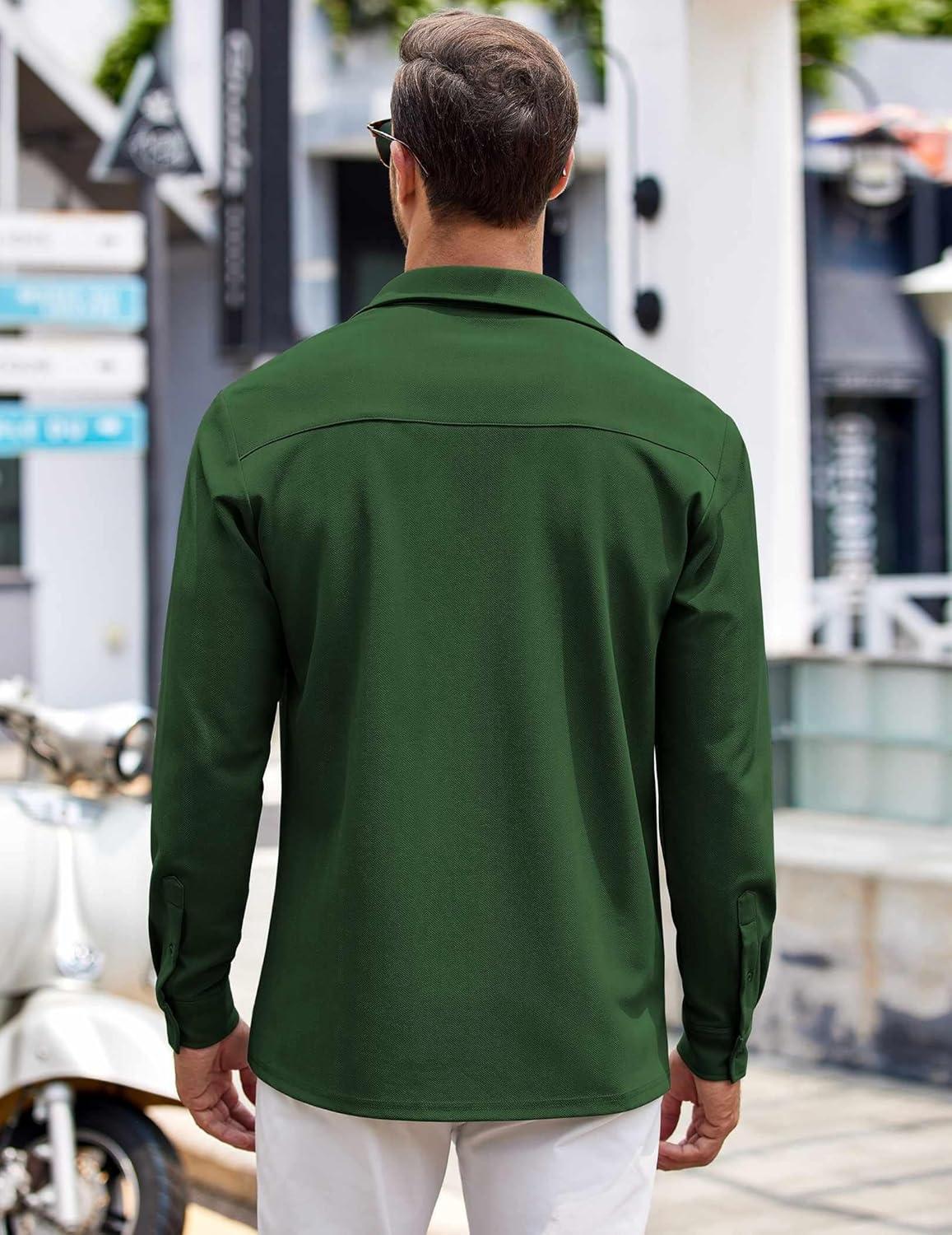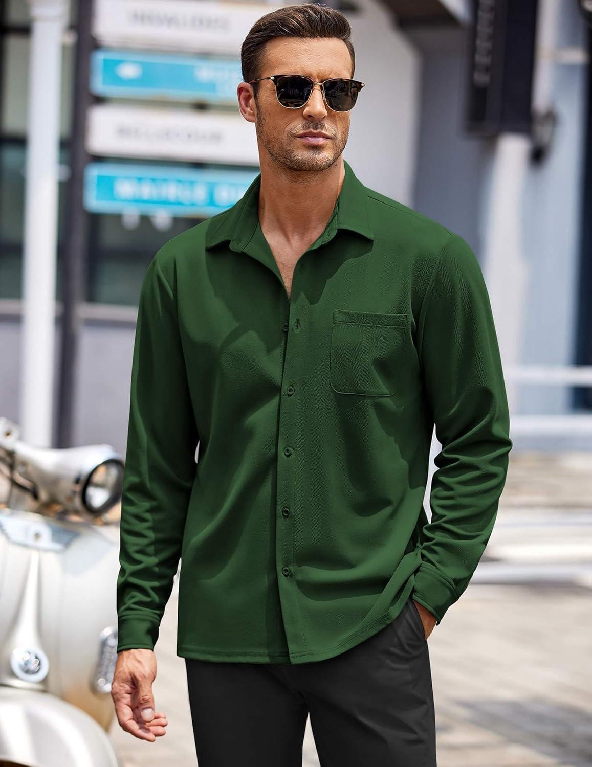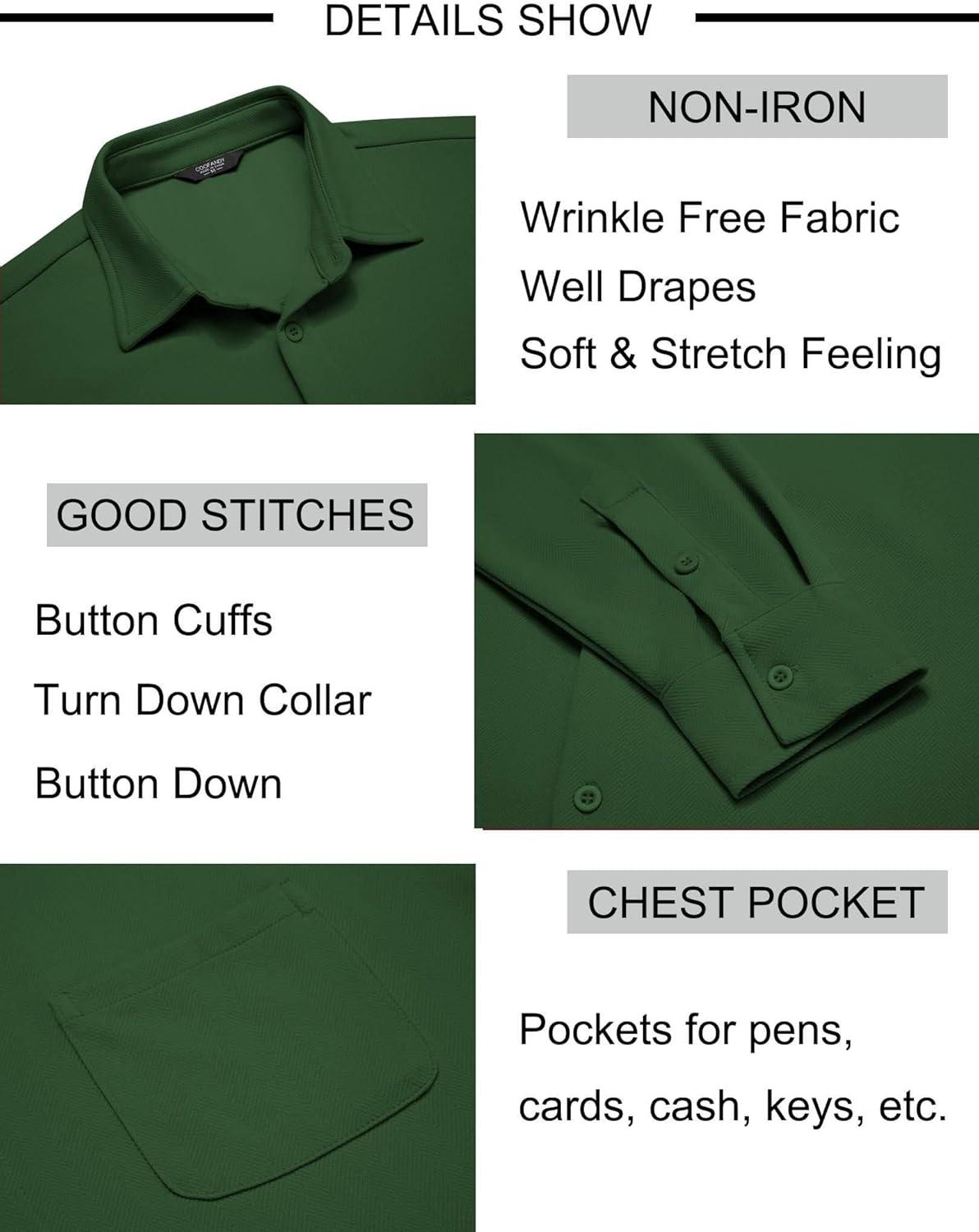COOFANDY Mens Long Sleeve Button Down Shirts Wrinkle Free Untucked Shirts Casual Dress Shirt for Men(Green)