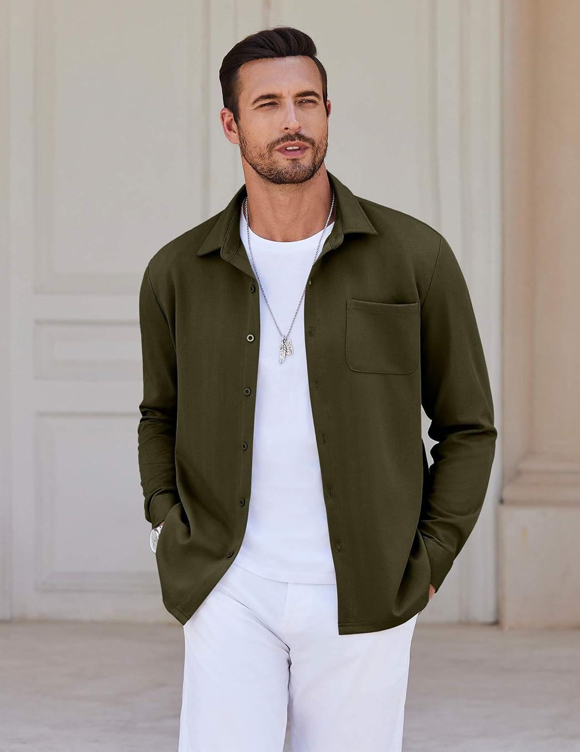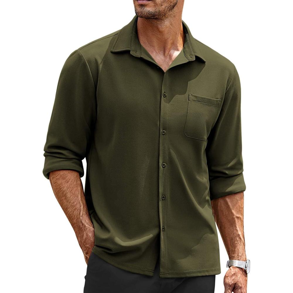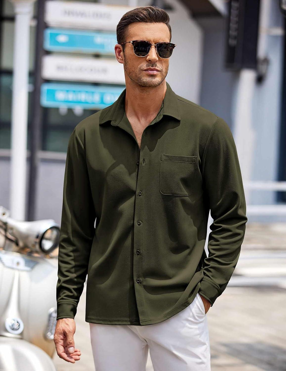 COOFANDY Mens Long Sleeve Button Down Shirts Wrinkle Free Untucked Shirts Casual Dress Shirt for Men(Olive Green)