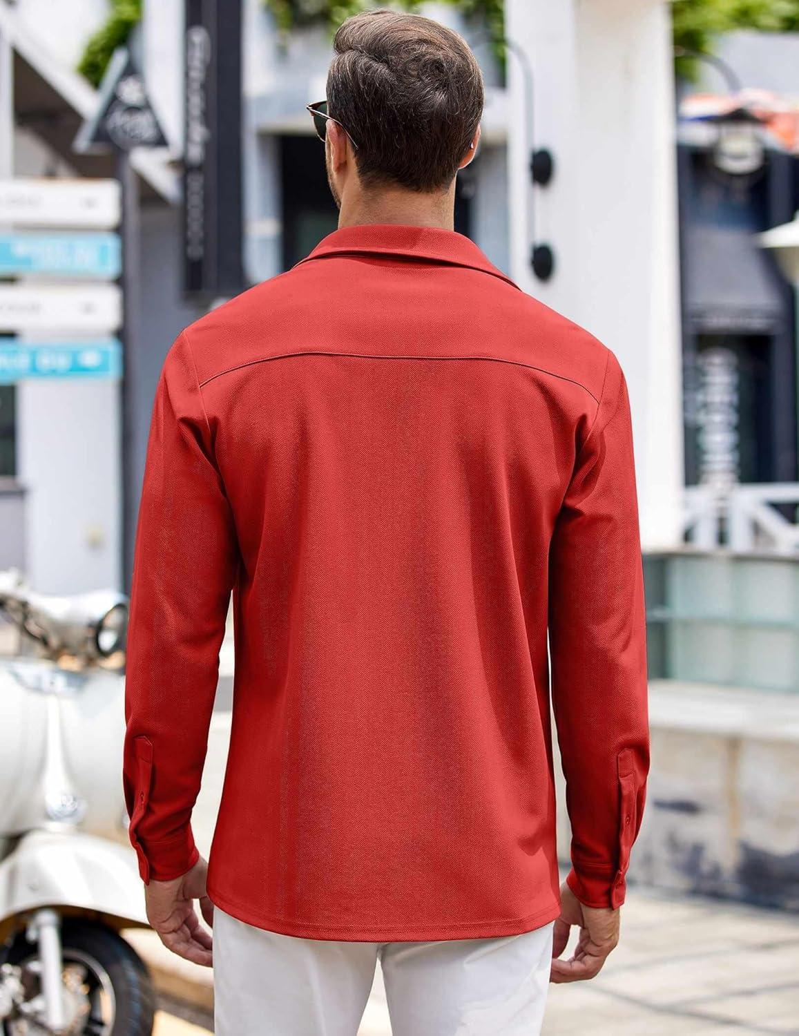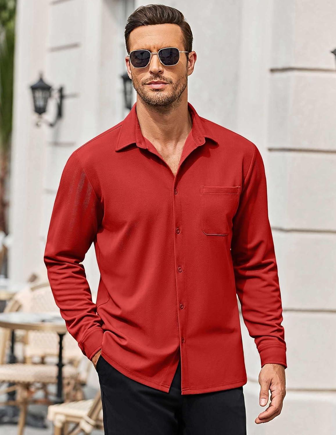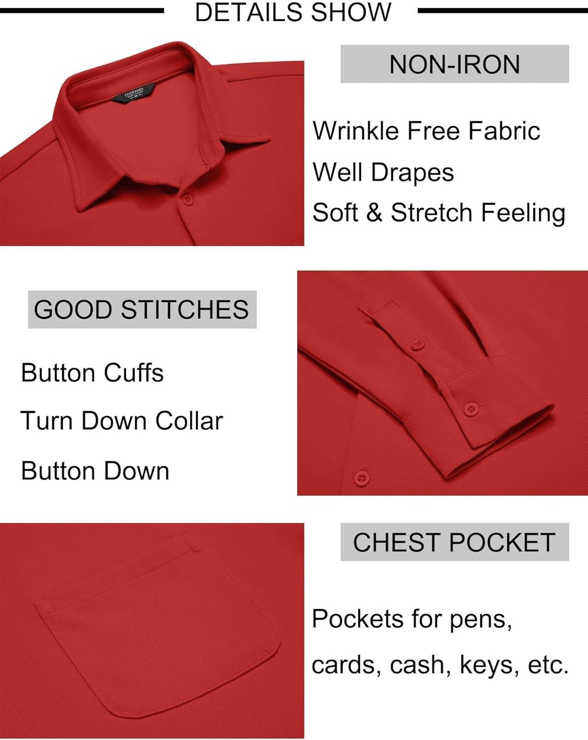 COOFANDY Mens Long Sleeve Button Down Shirts Wrinkle Free Untucked Shirts Casual Dress Shirt for Men(Red)