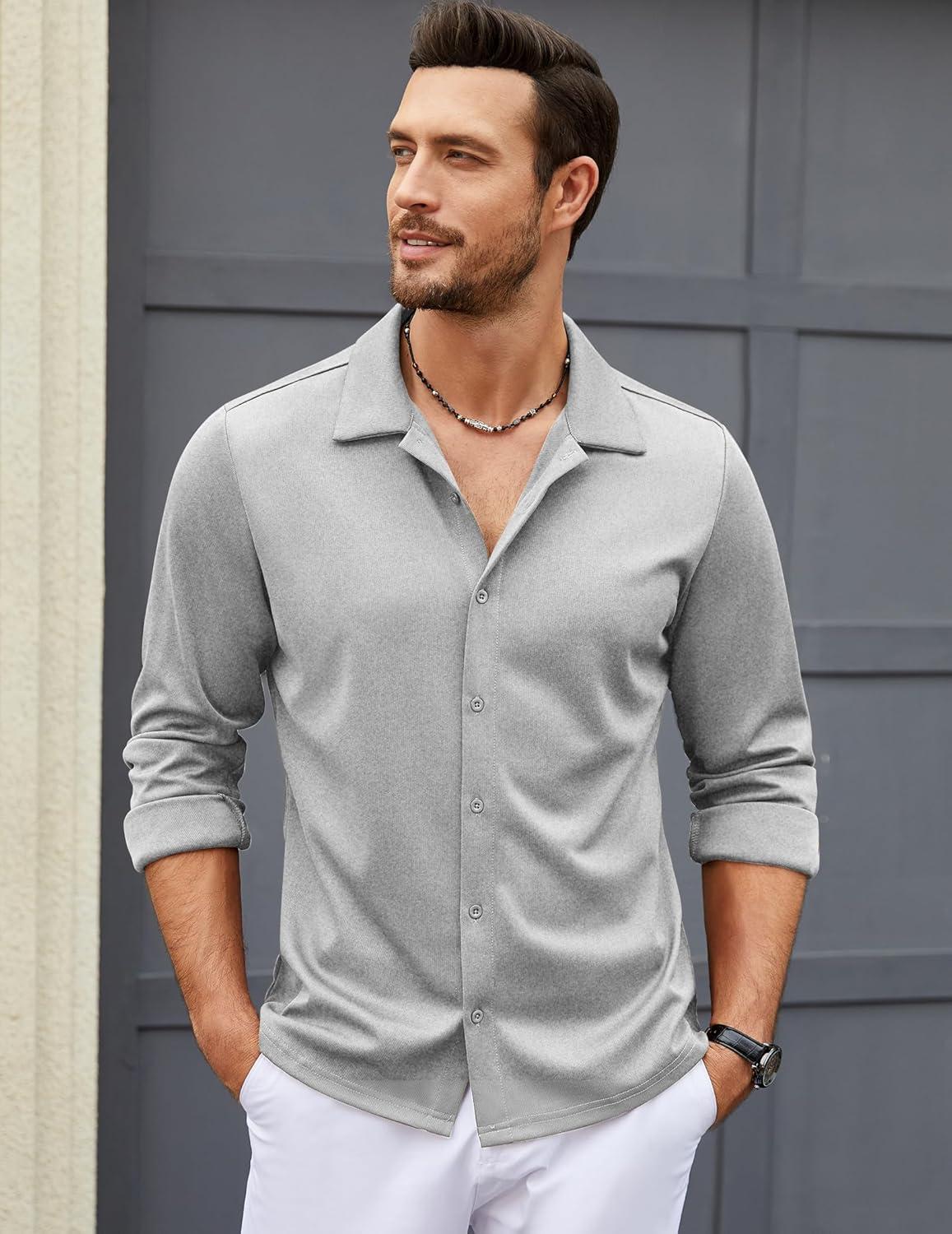 COOFANDY dress shirt is crafted from high-quality stretch fabric that feels silky, soft, and breathable. Designed for the modern man, this casual untucked shirt combines comfort, style, and practicality, making it a must-have in your wardrobe.
