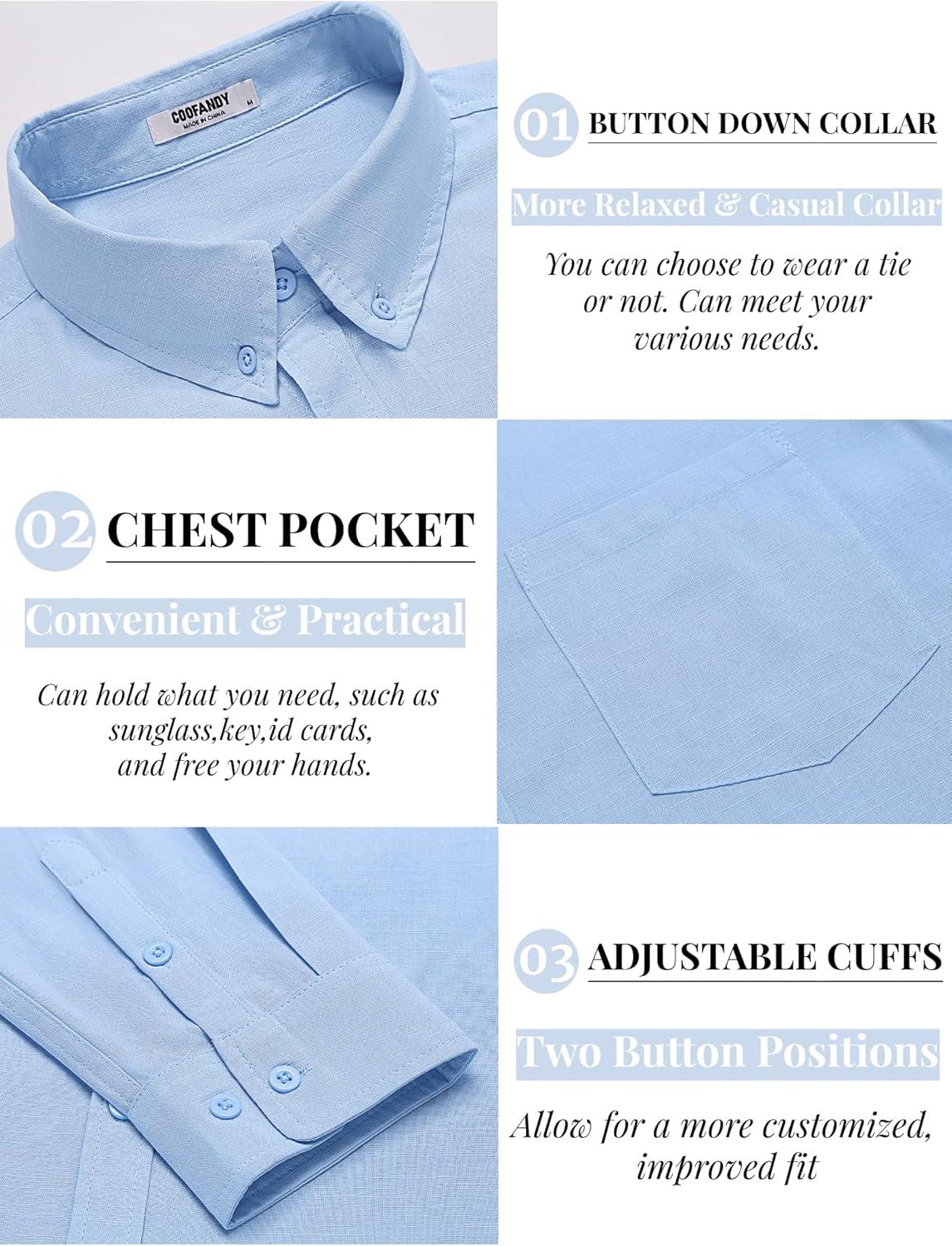 COOFANDY Men’s Long Sleeve Buttons Down Shirts Casual Button Up Shirts Beach Linen Shirt Untucked Dress Shirt(Light Blue)