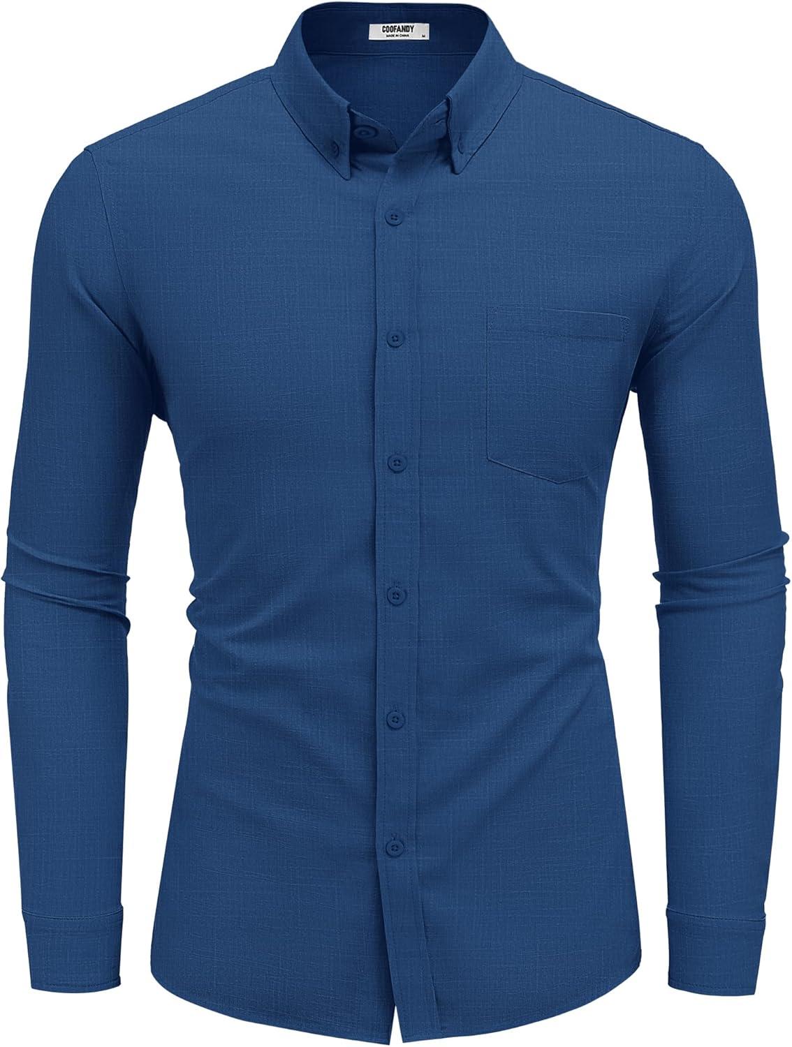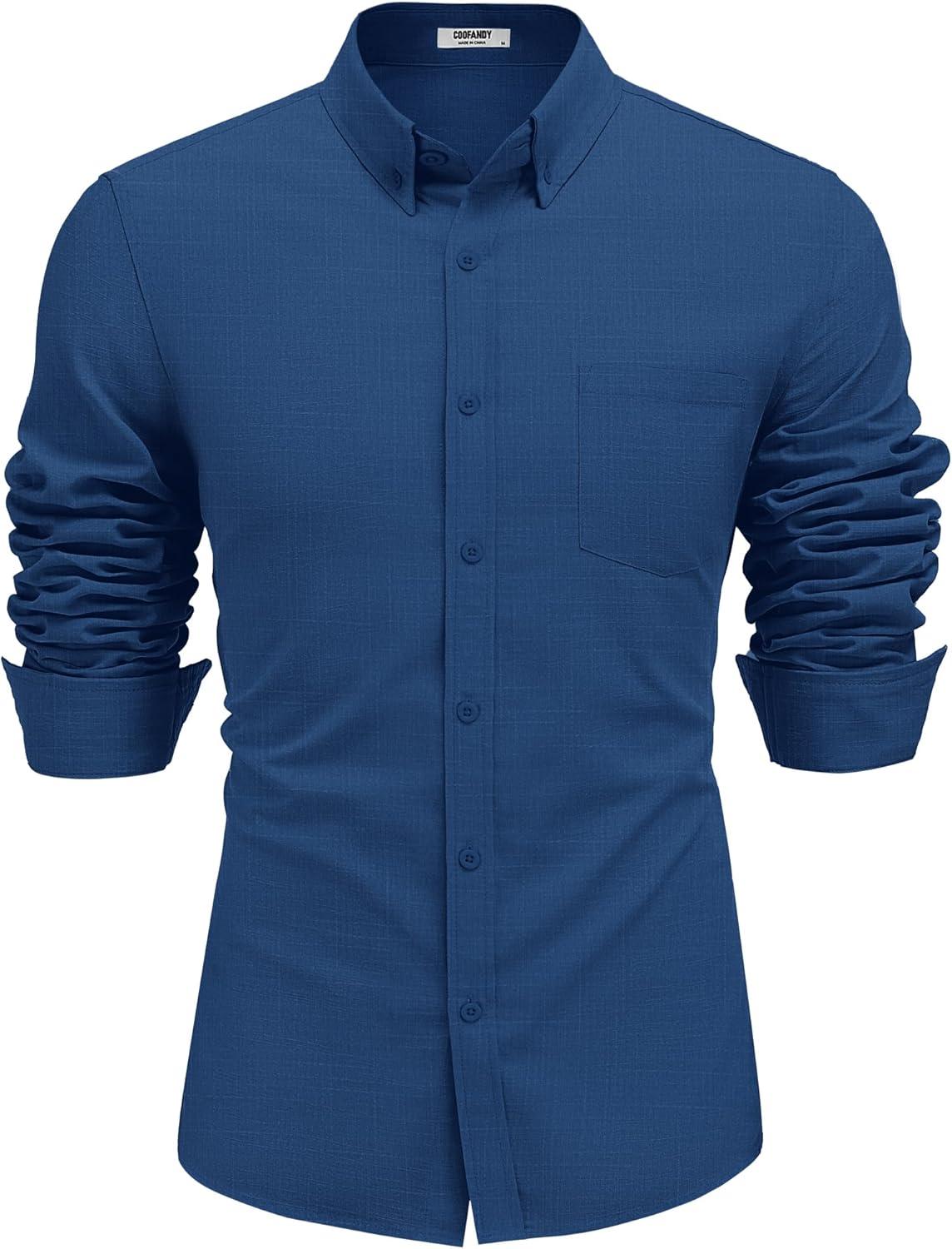 COOFANDY Men's Long Sleeve Buttons Down Shirts Casual Button Up Shirts Beach Linen Shirt Untucked Dress Shirt(Navy)