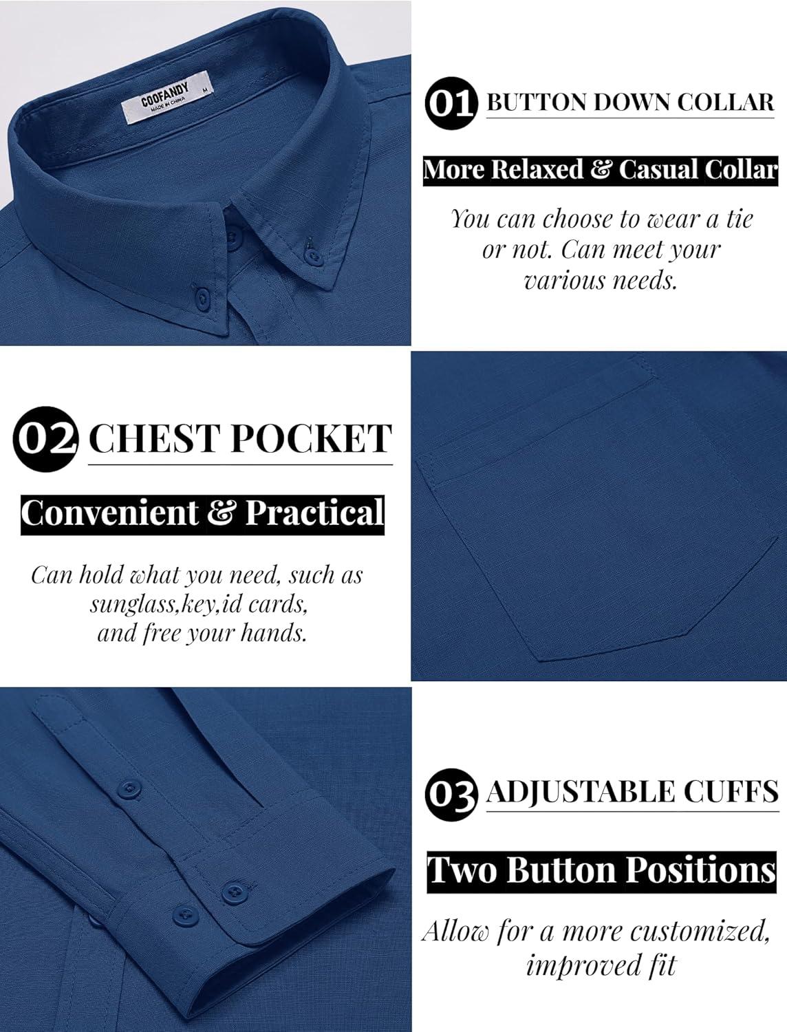 imageCOOFANDY Mens Long Sleeve Buttons Down Shirts Casual Button Up Shirts Beach Linen Shirt Untucked Dress ShirtNavy