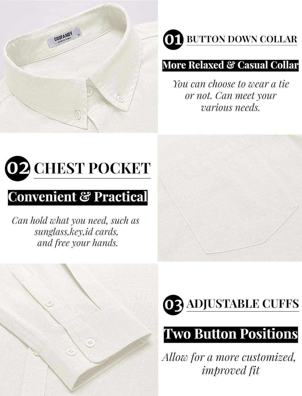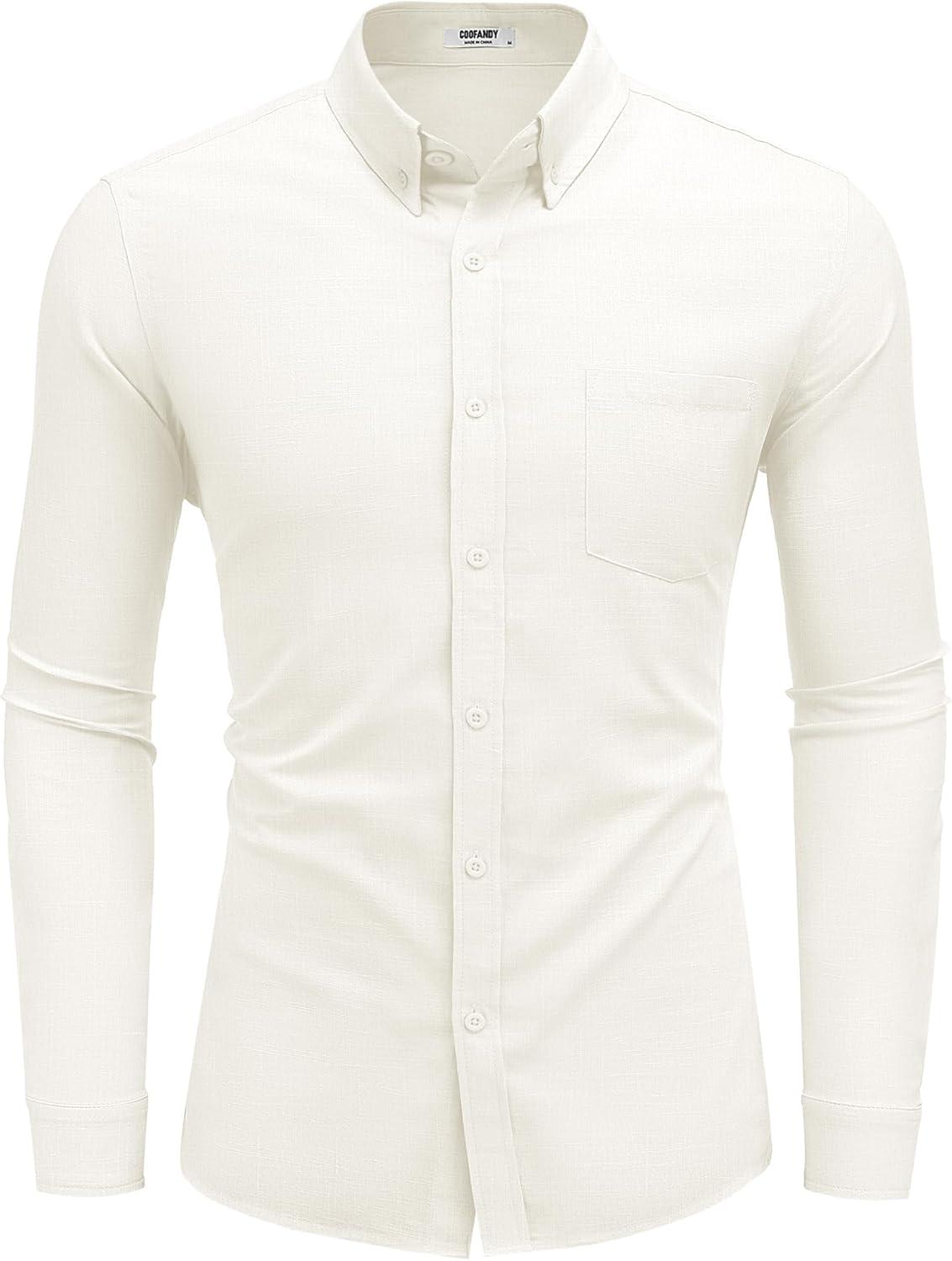 COOFANDY Men's Long Sleeve Buttons Down Shirts Casual Button Up Shirts Beach Linen Shirt Untucked Dress Shirt(White)