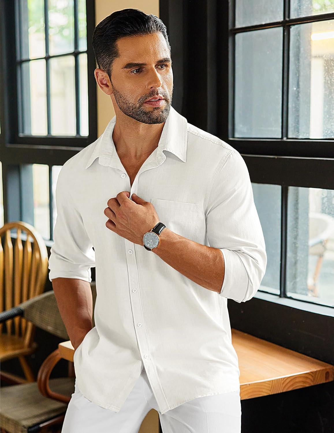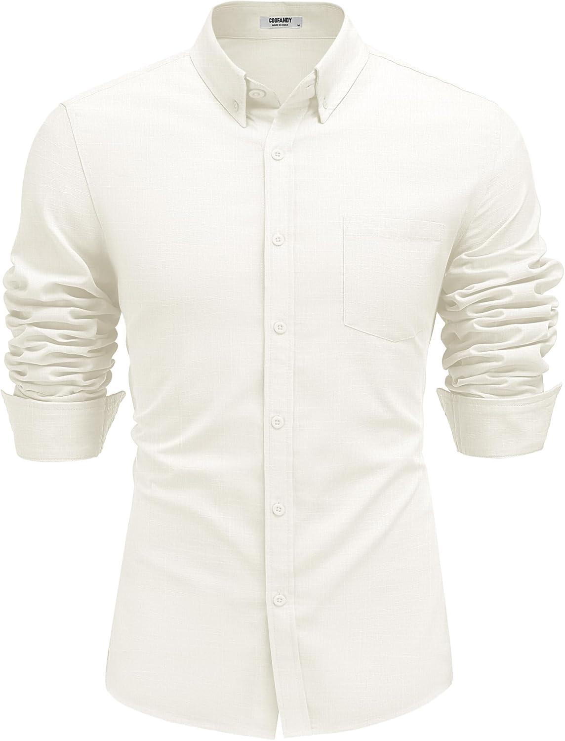 COOFANDY Men’s Long Sleeve Buttons Down Shirts Casual Button Up Shirts Beach Linen Shirt Untucked Dress Shirt(White)