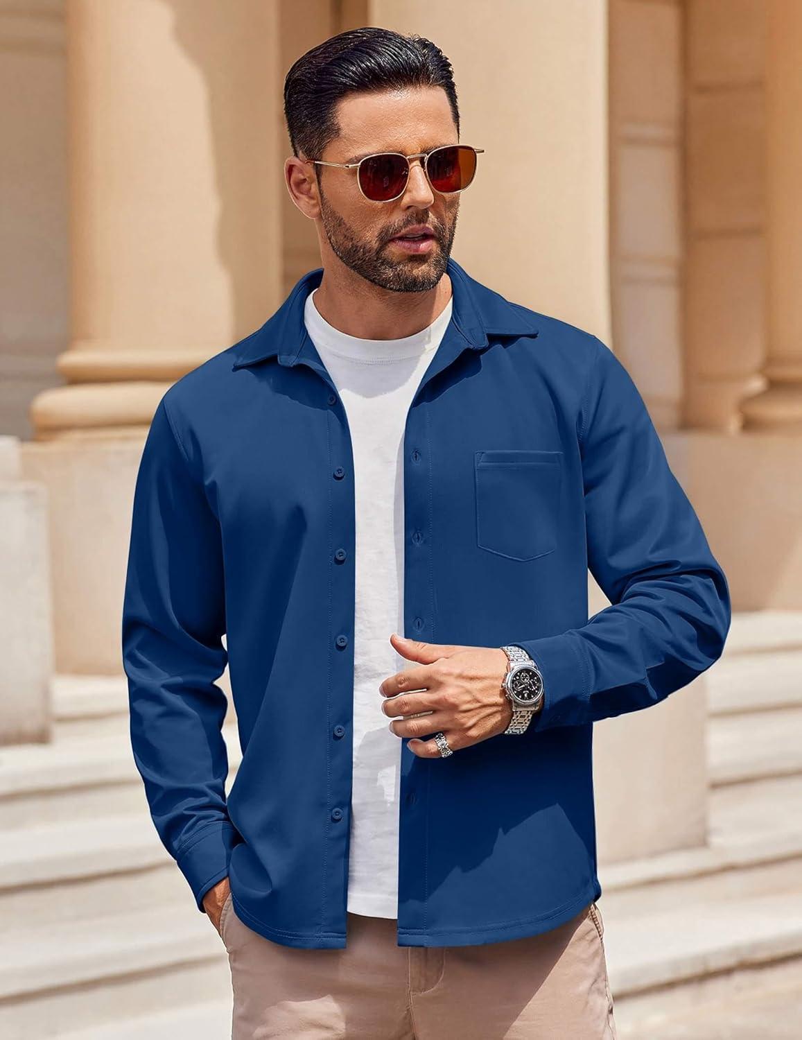COOFANDY Mens Long Sleeve Casual Button Down Shirt Wrinkle Free Untucked Dress Shirts(Deep Blue)