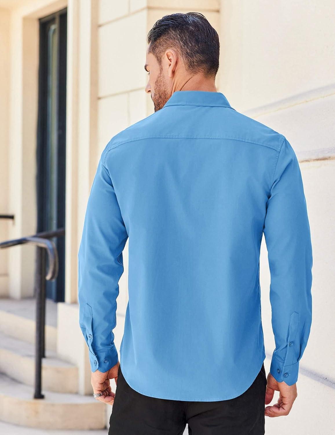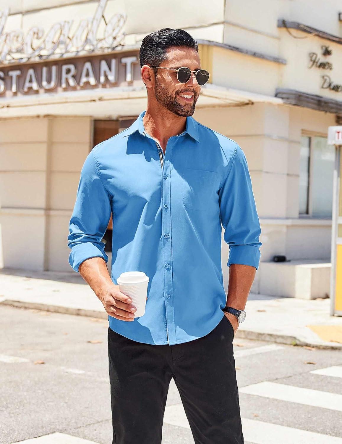 COOFANDY Men's Long Sleeve Casual Button Down Shirts Untucked Shirts for Men Regular Fit Dress Shirt(Blue)
