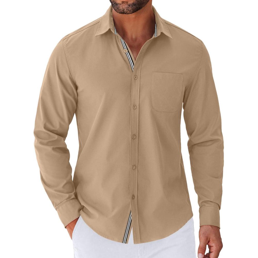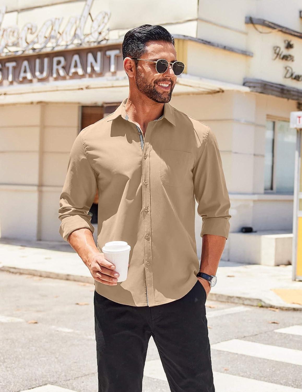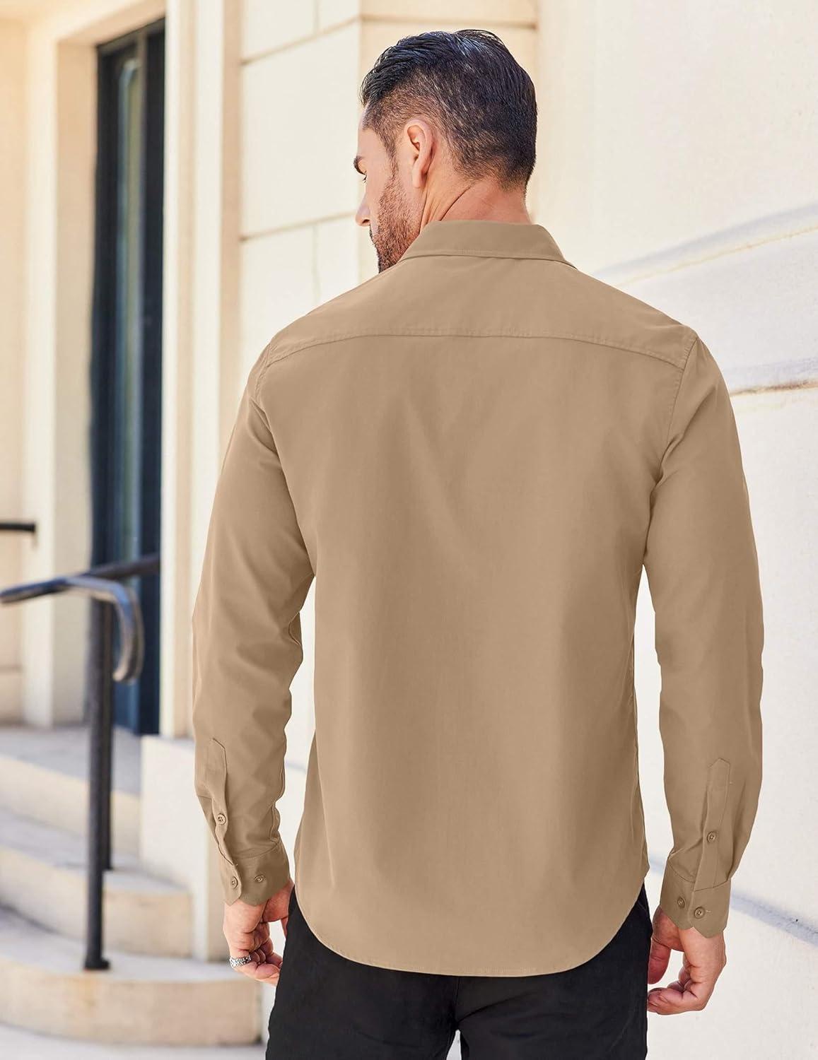 COOFANDY Men's Long Sleeve Casual Button Down Shirts Untucked Shirts for Men Regular Fit Dress Shirt(Khaki)