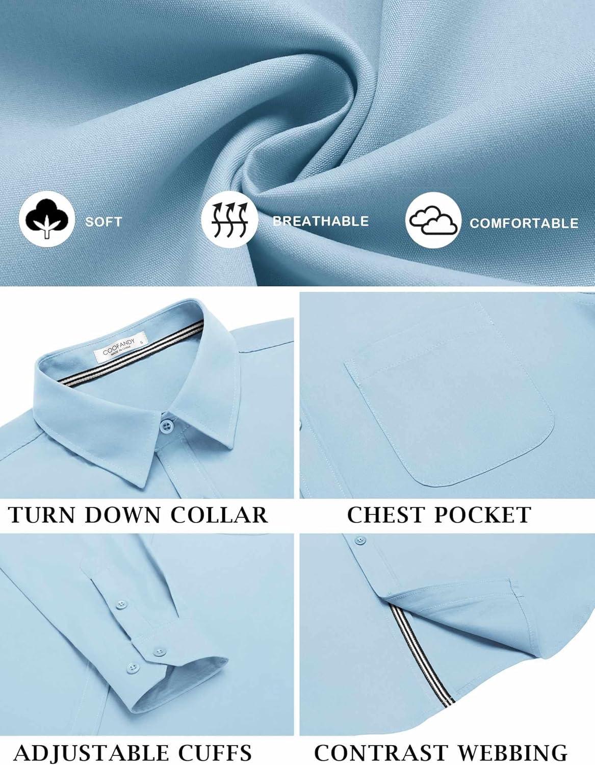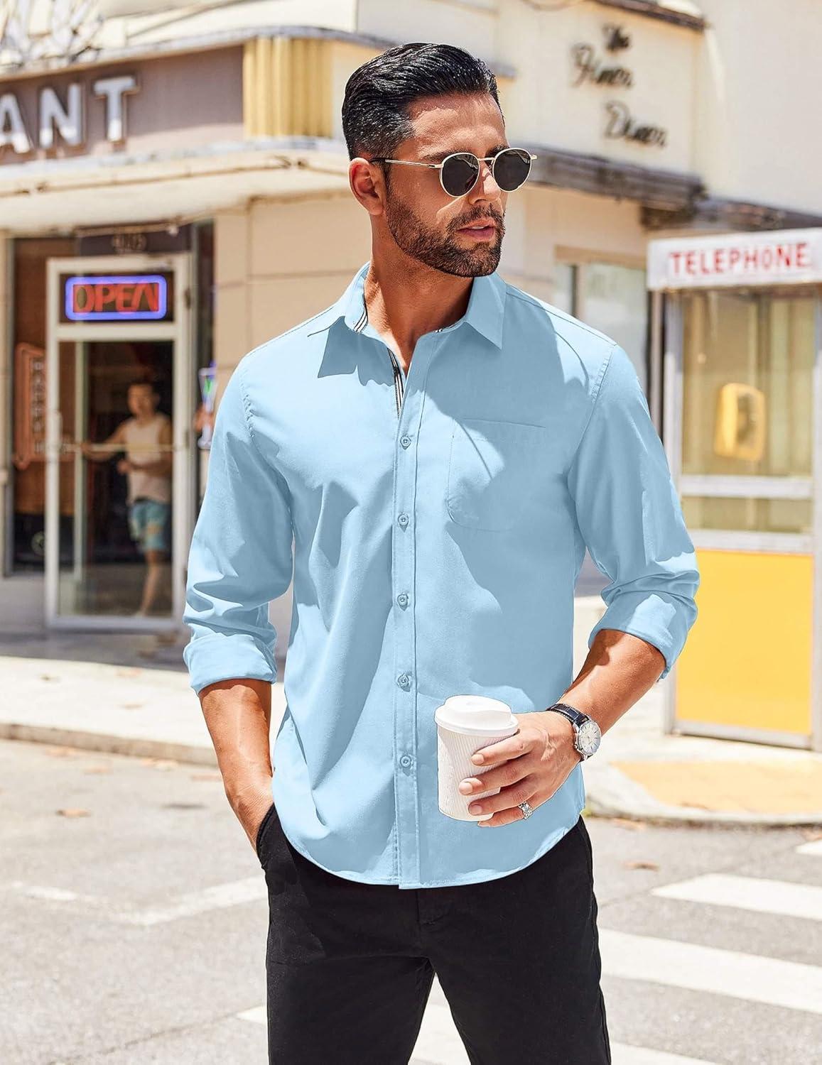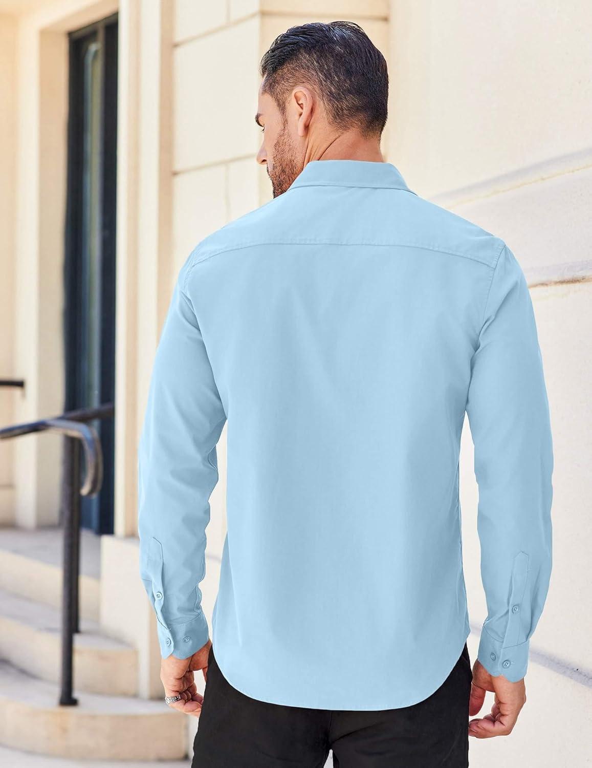 COOFANDY Men's Long Sleeve Casual Button Down Shirts Untucked Shirts for Men Regular Fit Dress Shirt(Light Blue)