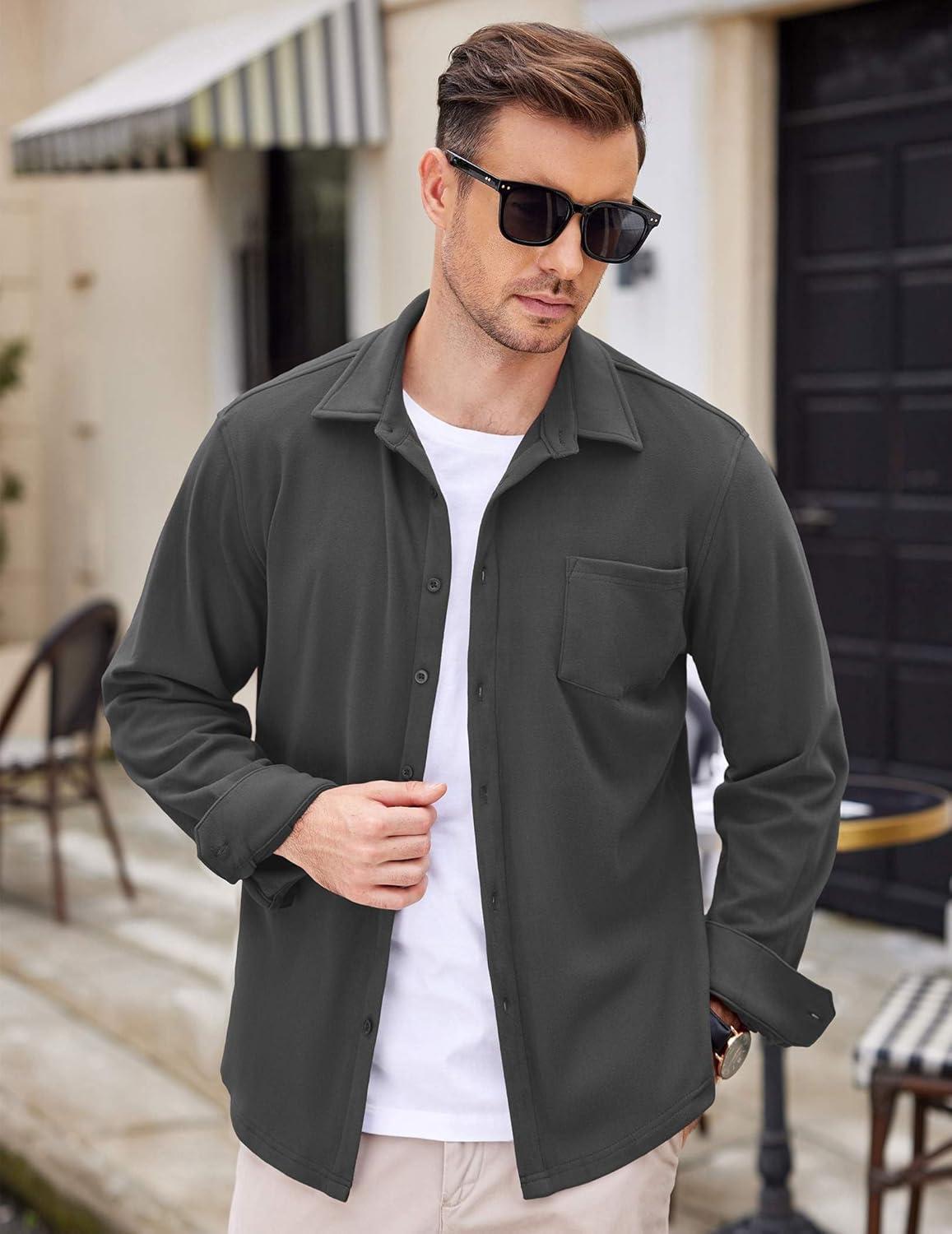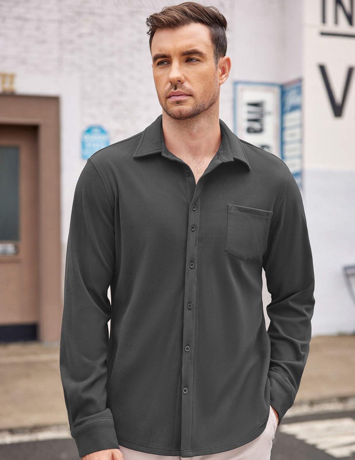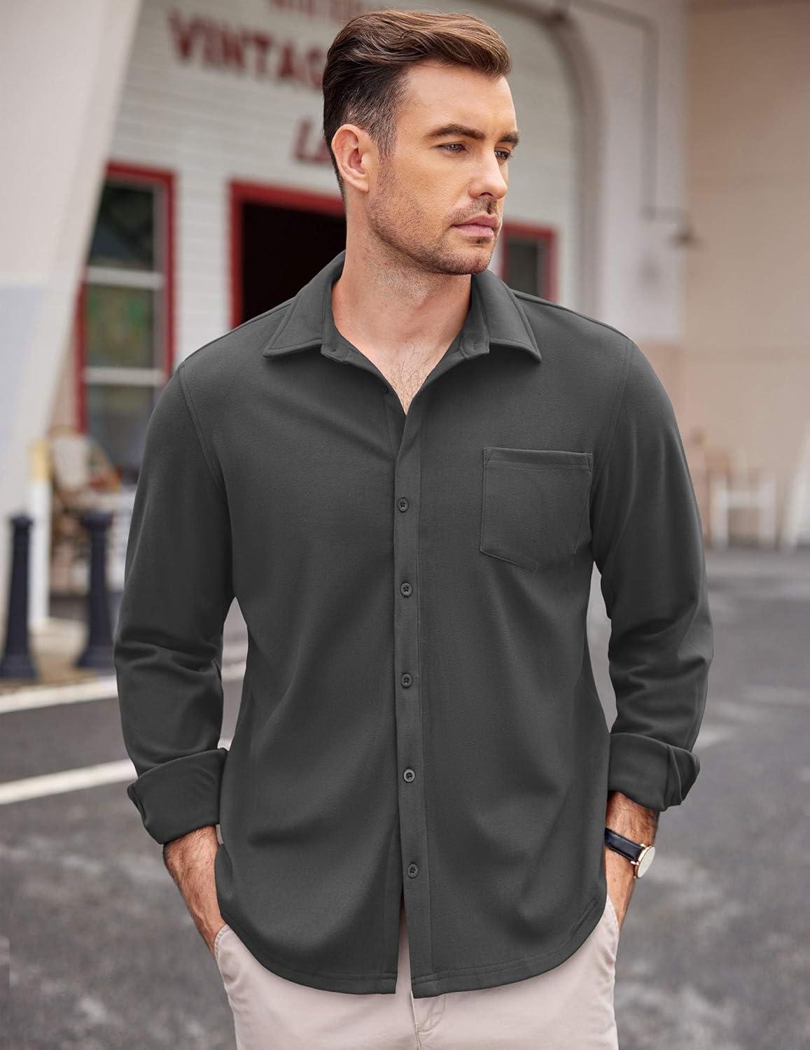 COOFANDY Mens Long Sleeve Dress Shirt Button Down Casual Shirts for Men Wrinkle Free Shirt with Pocket(Dark Grey)
