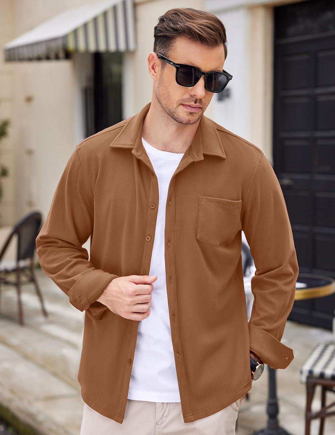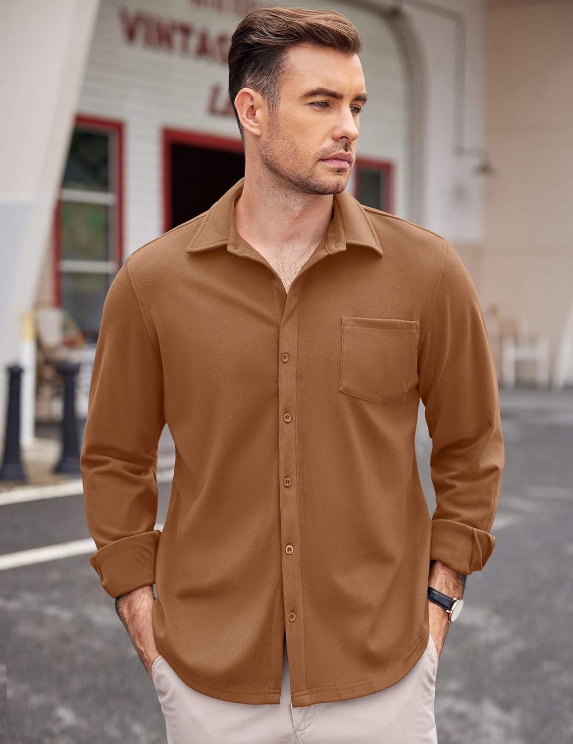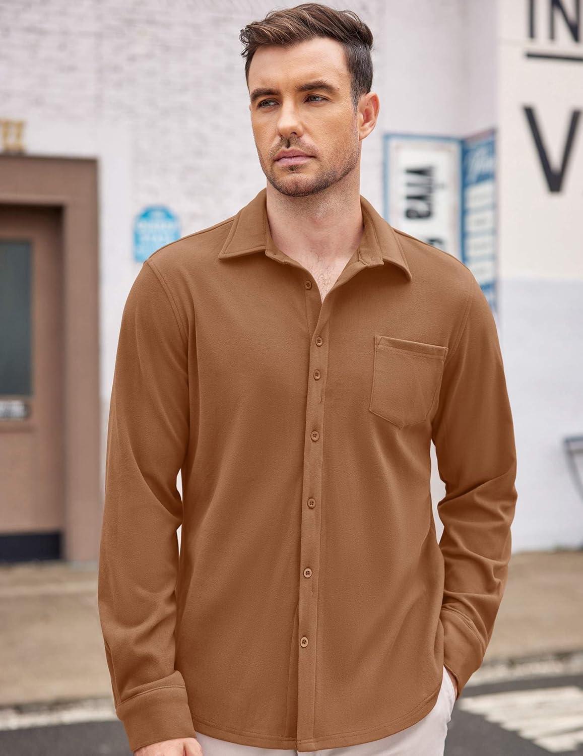 COOFANDY Mens Long Sleeve Dress Shirt Button Down Casual Shirts for Men Wrinkle Free Shirt with Pocket(Light Brown)