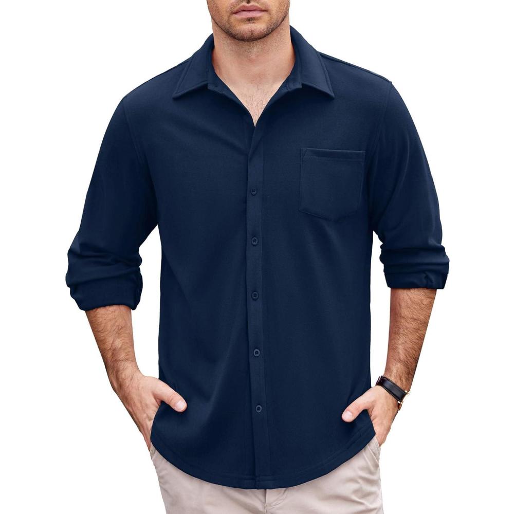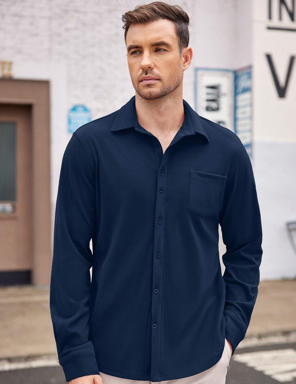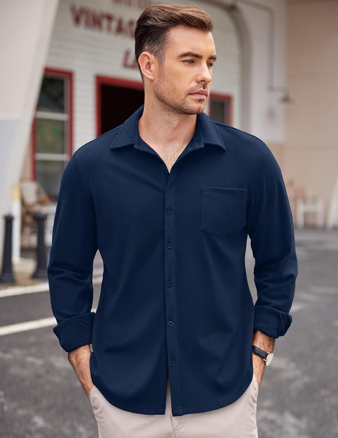 COOFANDY Mens Long Sleeve Dress Shirt Button Down Casual Shirts for Men Wrinkle Free Shirt with Pocket(Navy Blue)