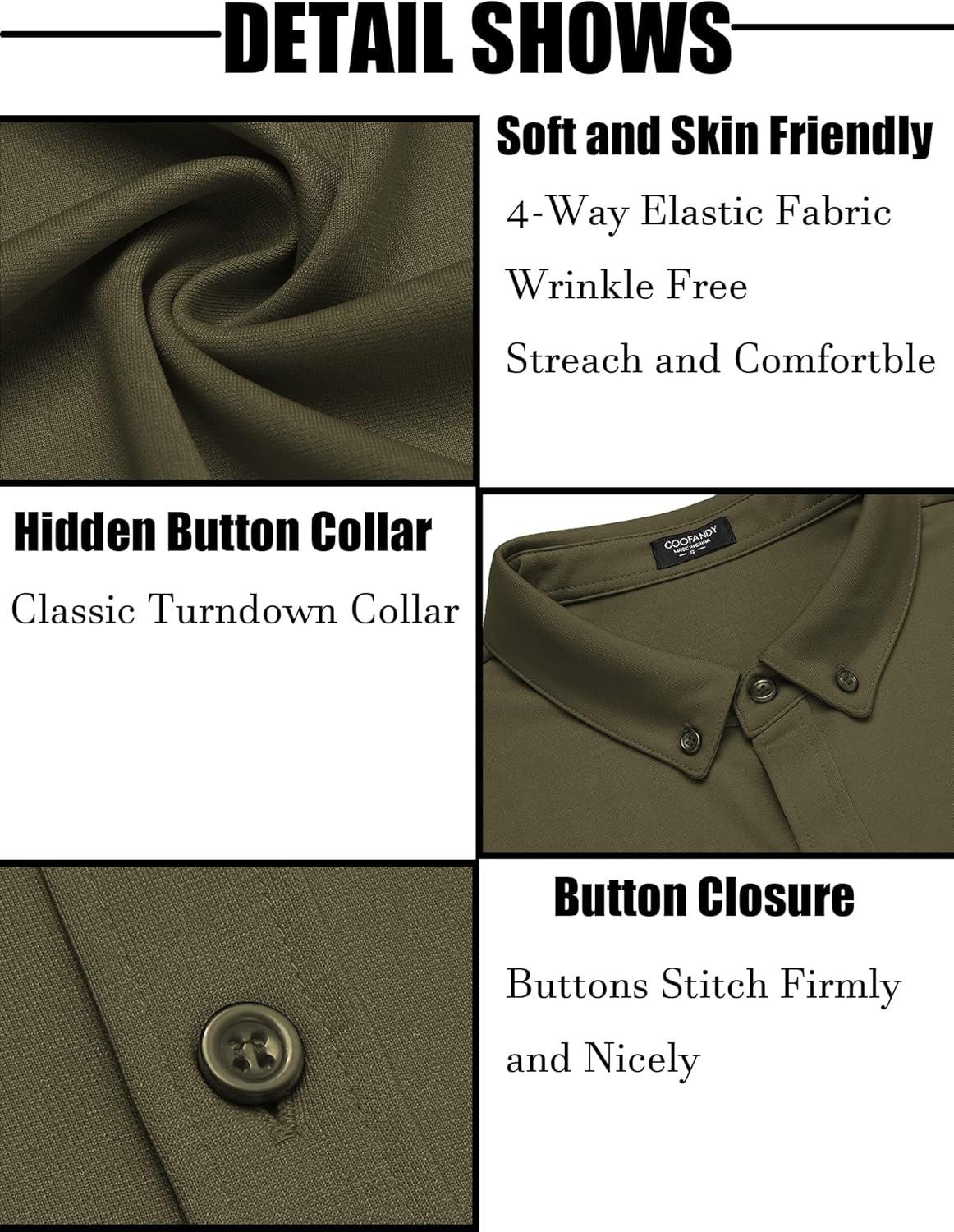 COOFANDY Men's Long Sleeve Dress Shirt Casual Button Down Shirts Wrinkle Free Untucked Shirt(Army Green)