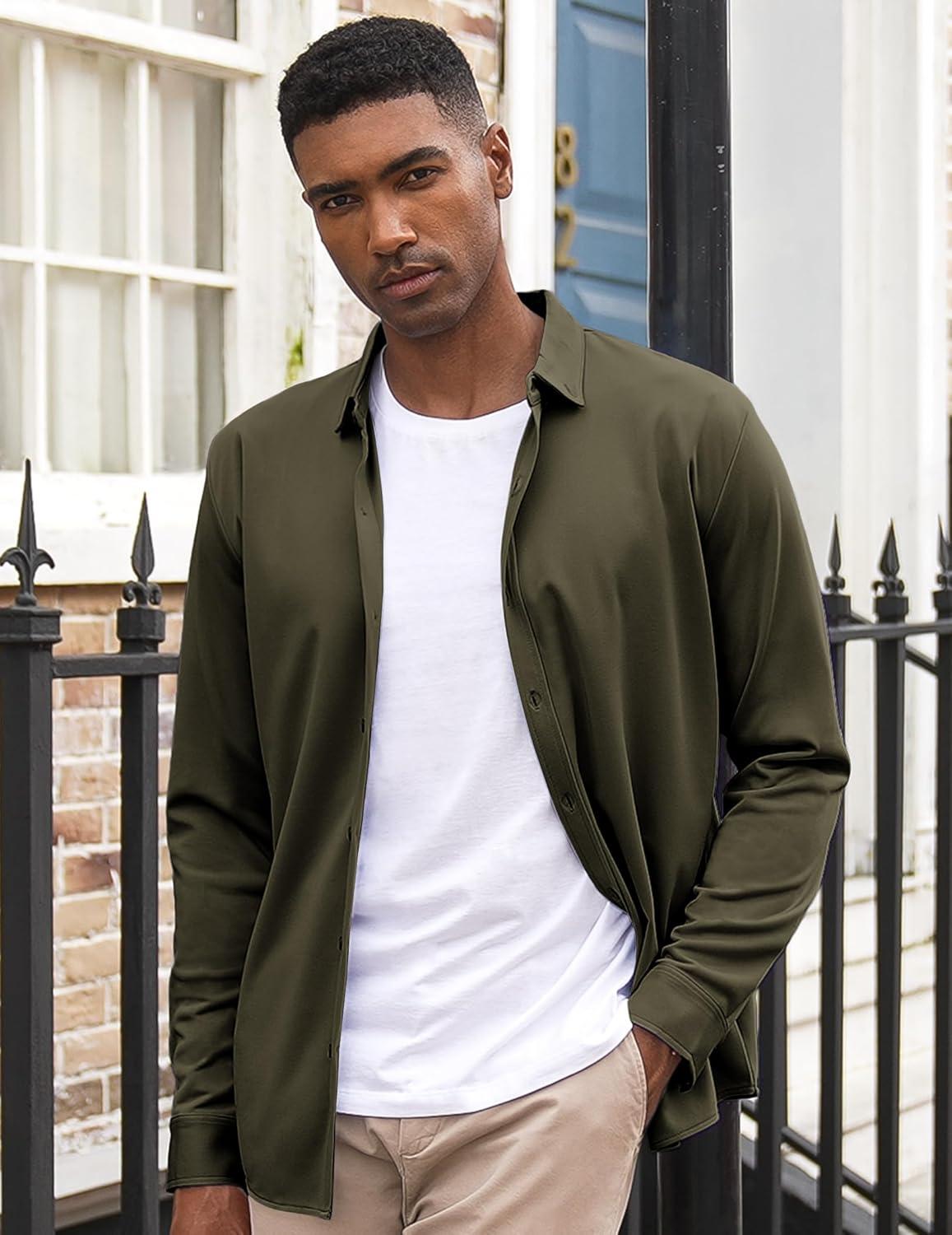 COOFANDY Men’s Long Sleeve Dress Shirt Casual Button Down Shirts Wrinkle Free Untucked Shirt(Army Green)