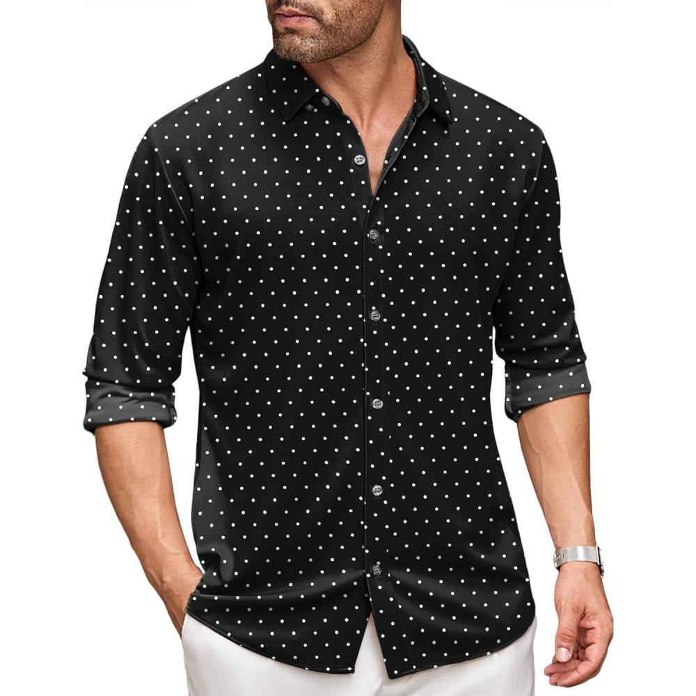 COOFANDY Men's Long Sleeve Dress Shirt Casual Button Down Shirts Wrinkle Free Untucked Shirt(White Dots Black)