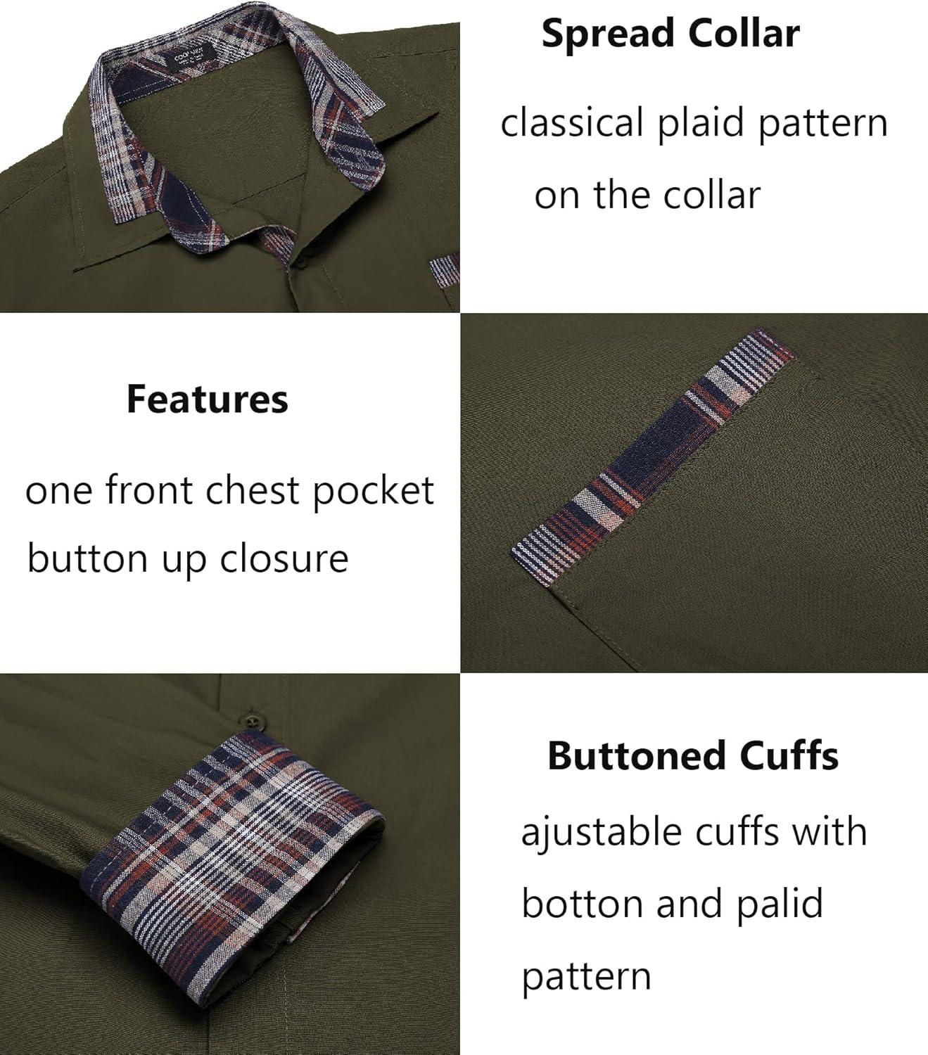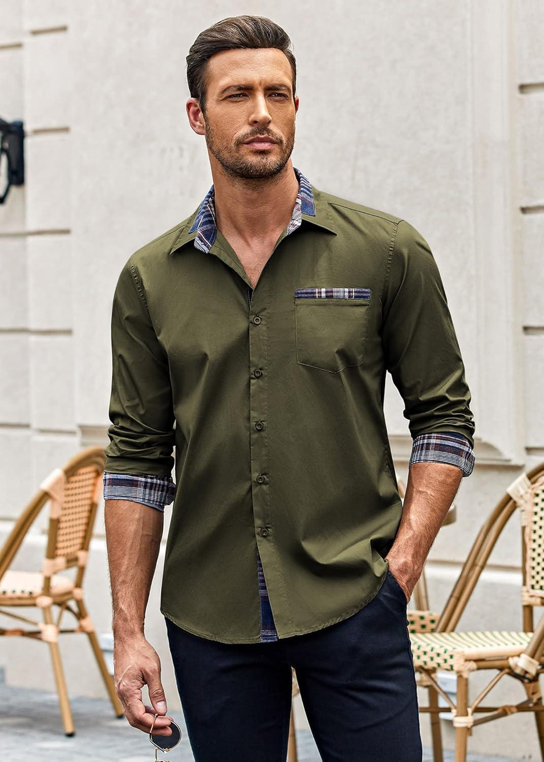 COOFANDY Men's Long Sleeve Dress Shirt Plaid Collar Casual Button Down Shirts(Army Green)