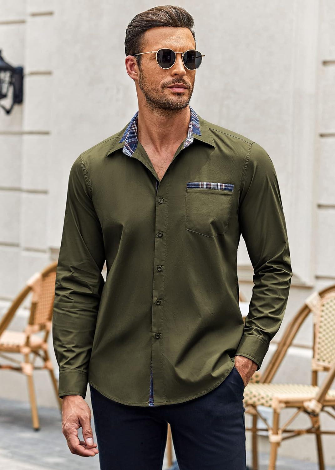 COOFANDY Men’s Long Sleeve Dress Shirt Plaid Collar Casual Button Down Shirts(Army Green)