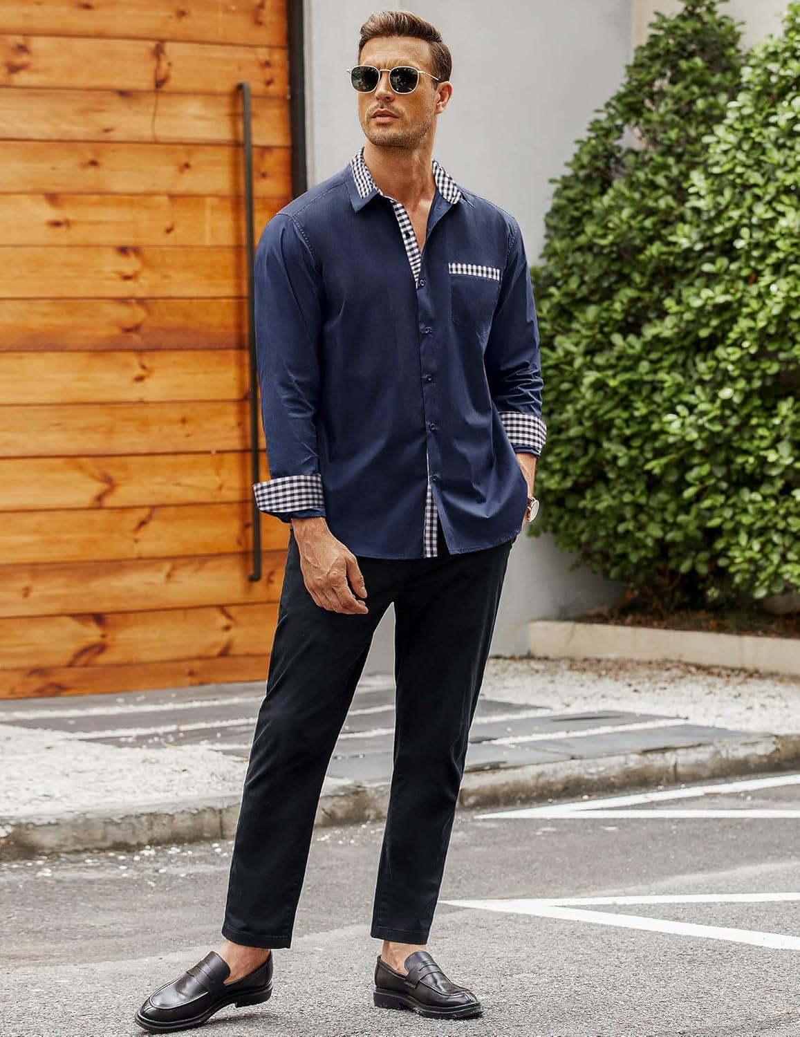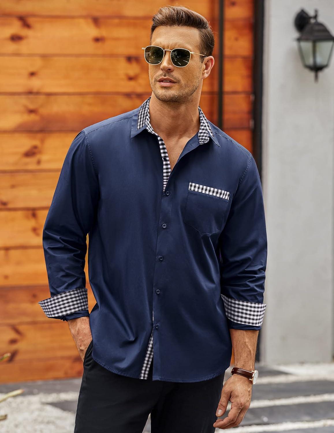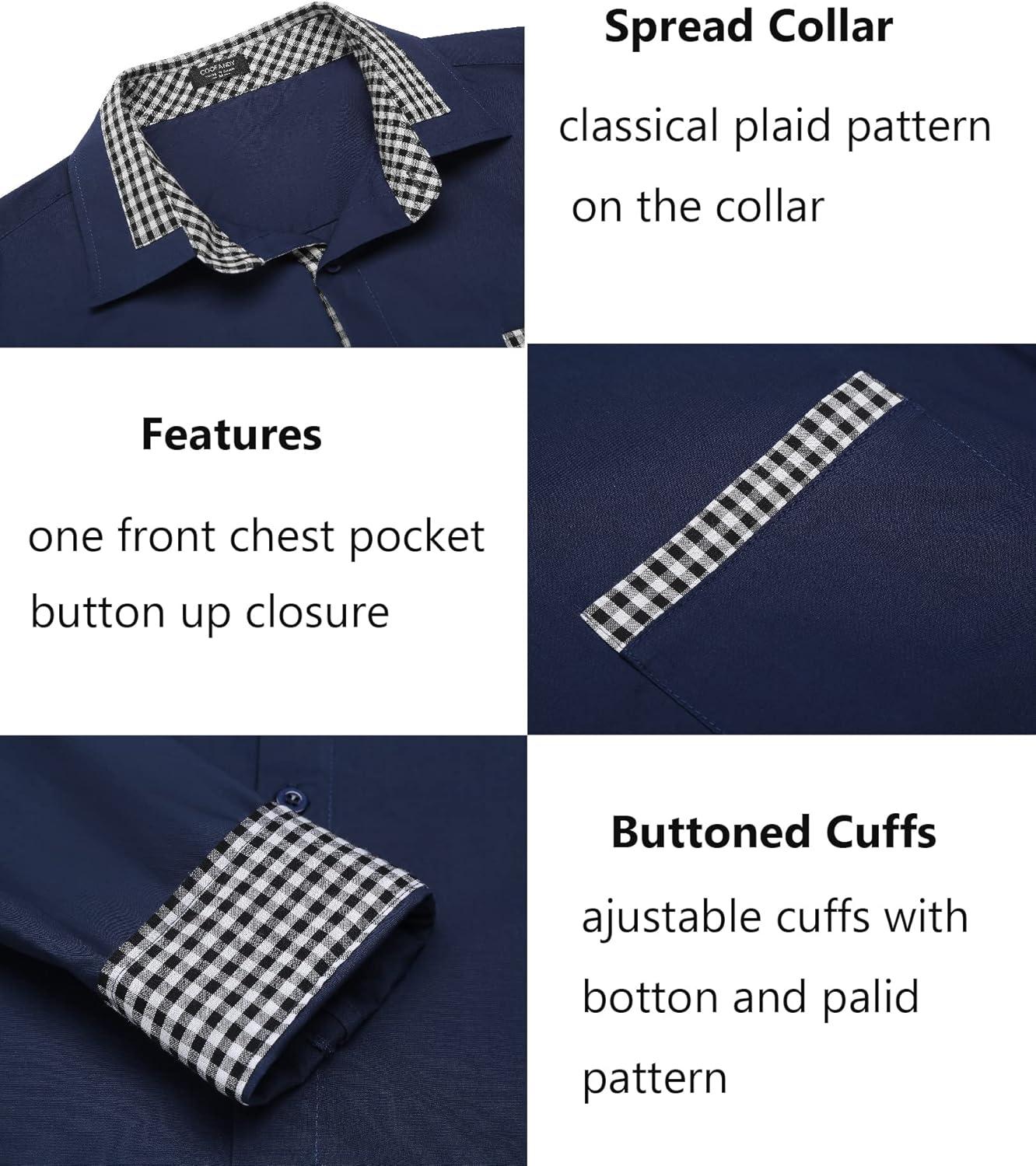 COOFANDY Men’s Long Sleeve Dress Shirt Plaid Collar Casual Button Down Shirts(Check Pattern-blue)