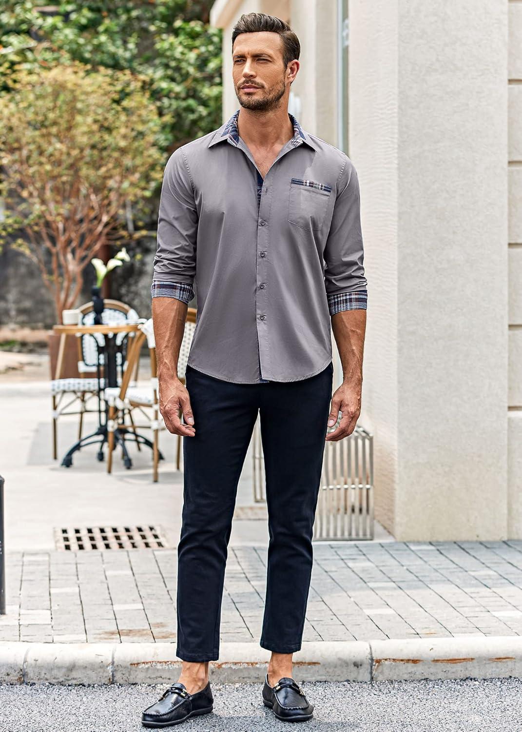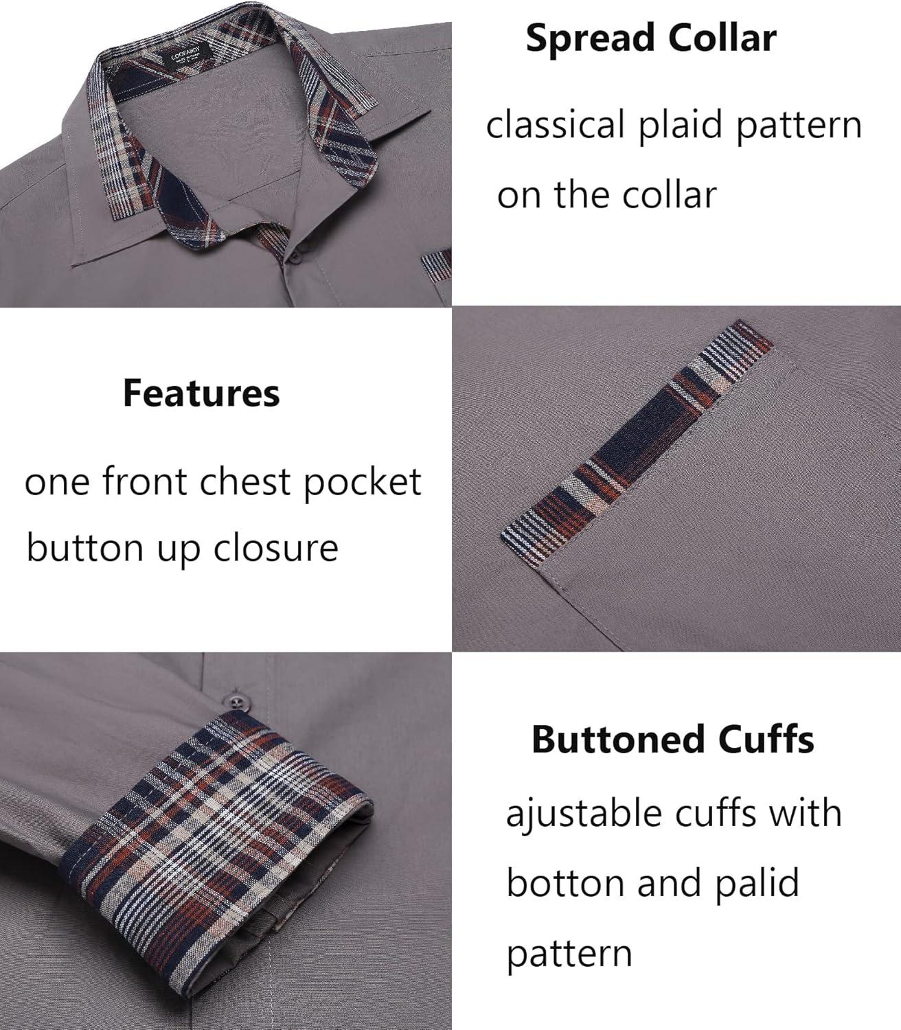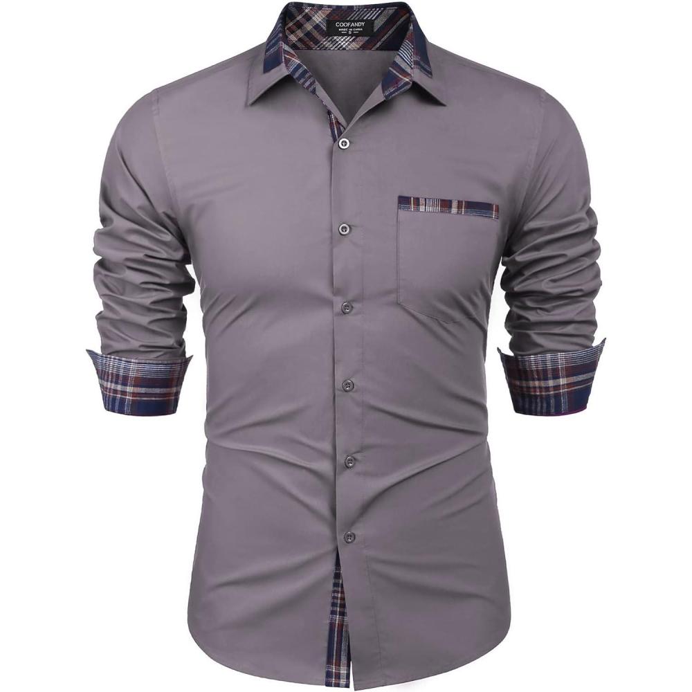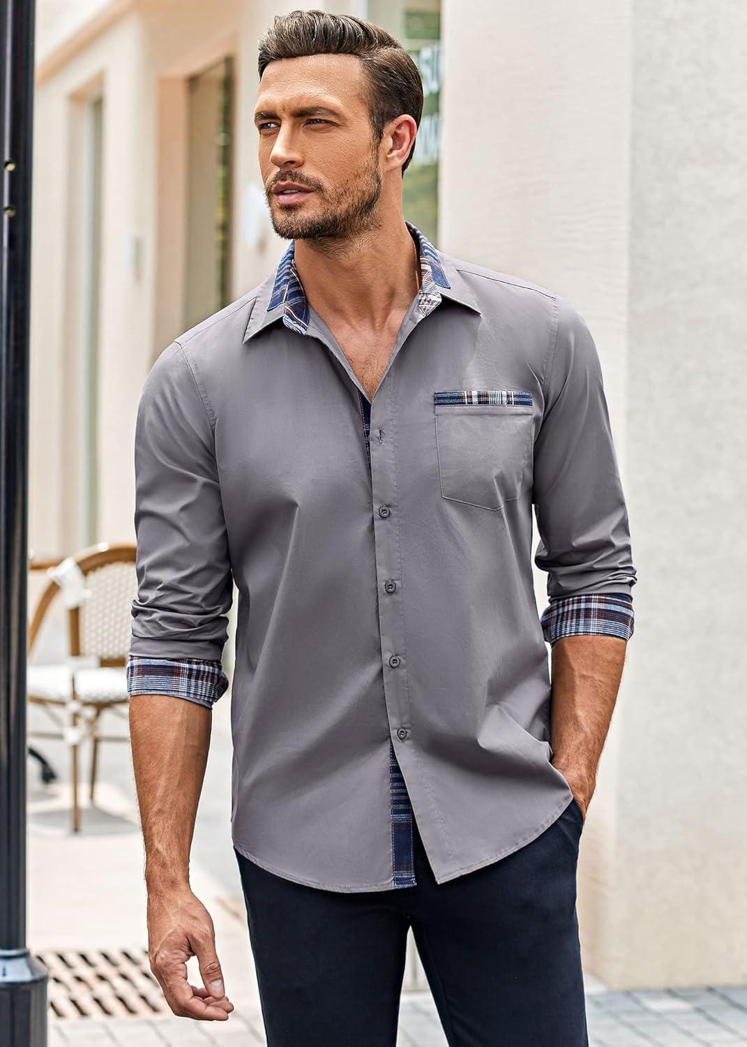 COOFANDY Men's Long Sleeve Dress Shirt Plaid Collar Casual Button Down Shirts(Grey)