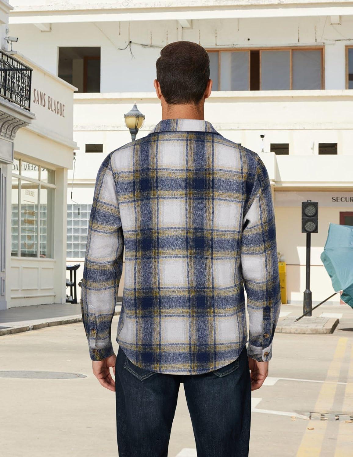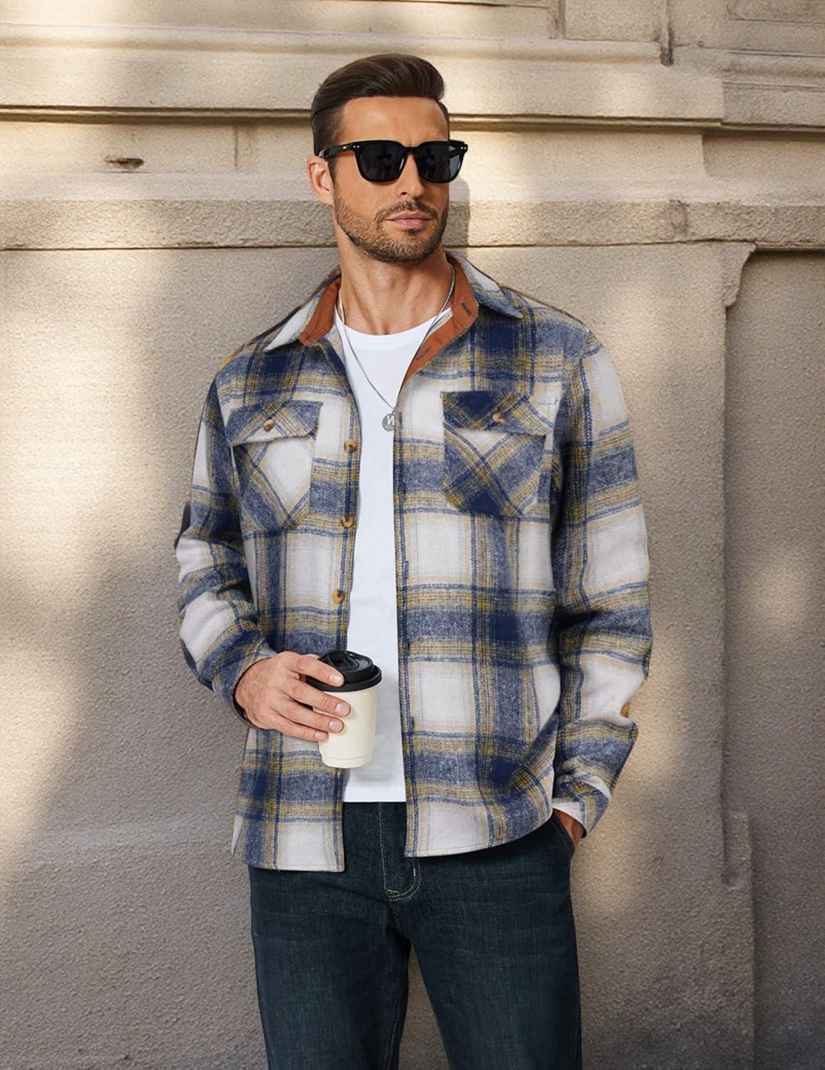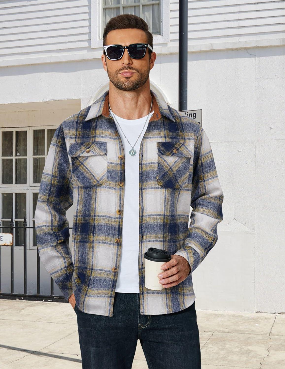COOFANDY Men's Long Sleeve Flannel Shirts Fashion Plaid Jacket Casual Button Down Shirt with Pockets(Blue Yellow-line)