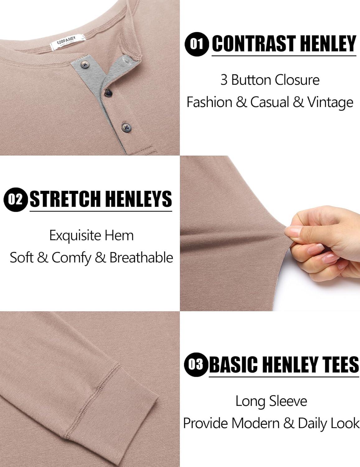 COOFANDY Men's Long Sleeve Henley Shirts Cotton T-Shirts Casual Pullover Shirt Soft Stretch Basic Tees Fall Tops(Beige)