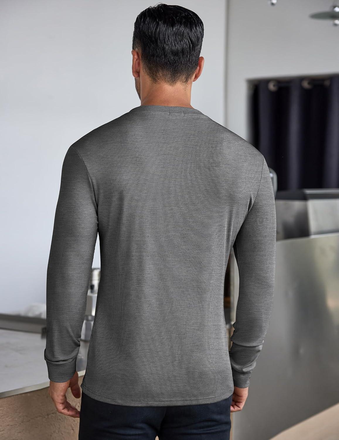 COOFANDY Men’s Long Sleeve Henley Shirts Stretch Ribbed T-Shirts Fashion Casual Basic Tops(Heather Grey)