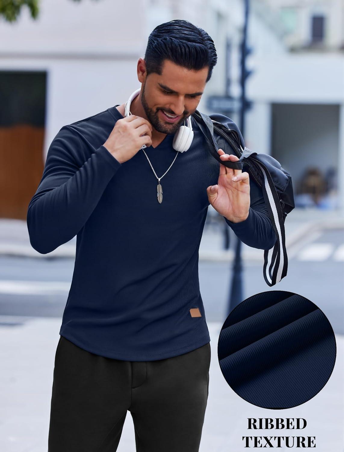 Be the first to review “COOFANDY Men’s Long Sleeve Muscle T Shirts Casual V-Neck Slim Fit Longline Ribbed Tee Stretch Gym Workout Shirts(Navy Blue)” Cancel reply