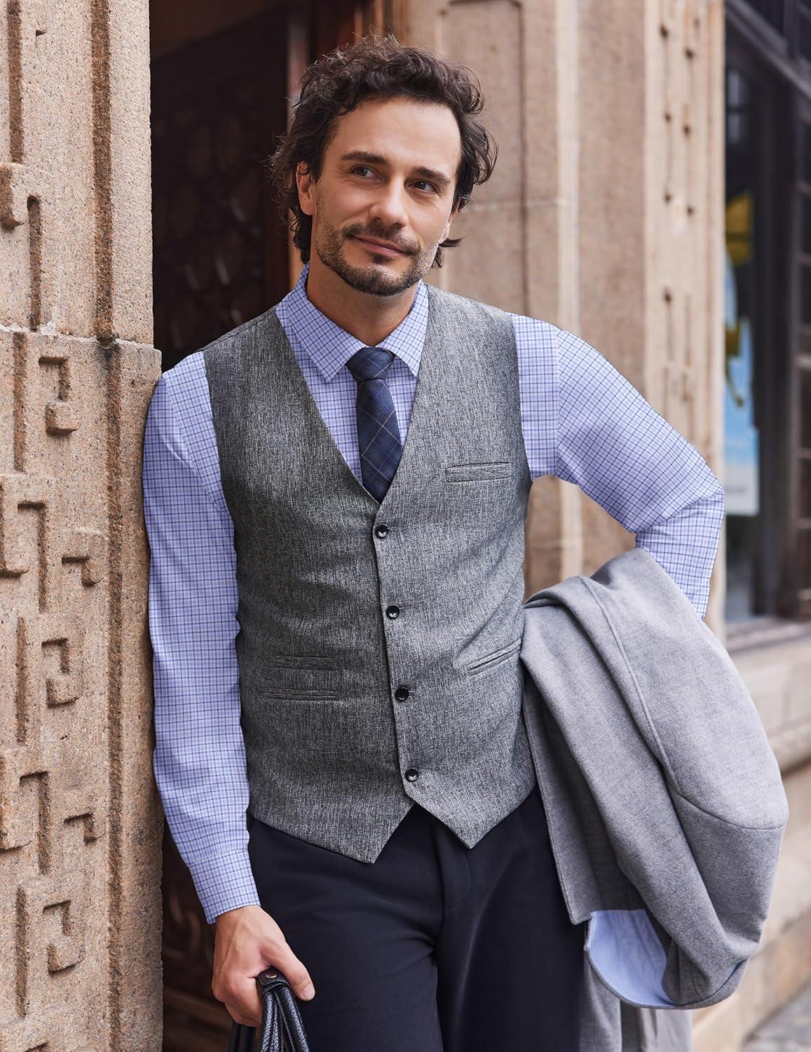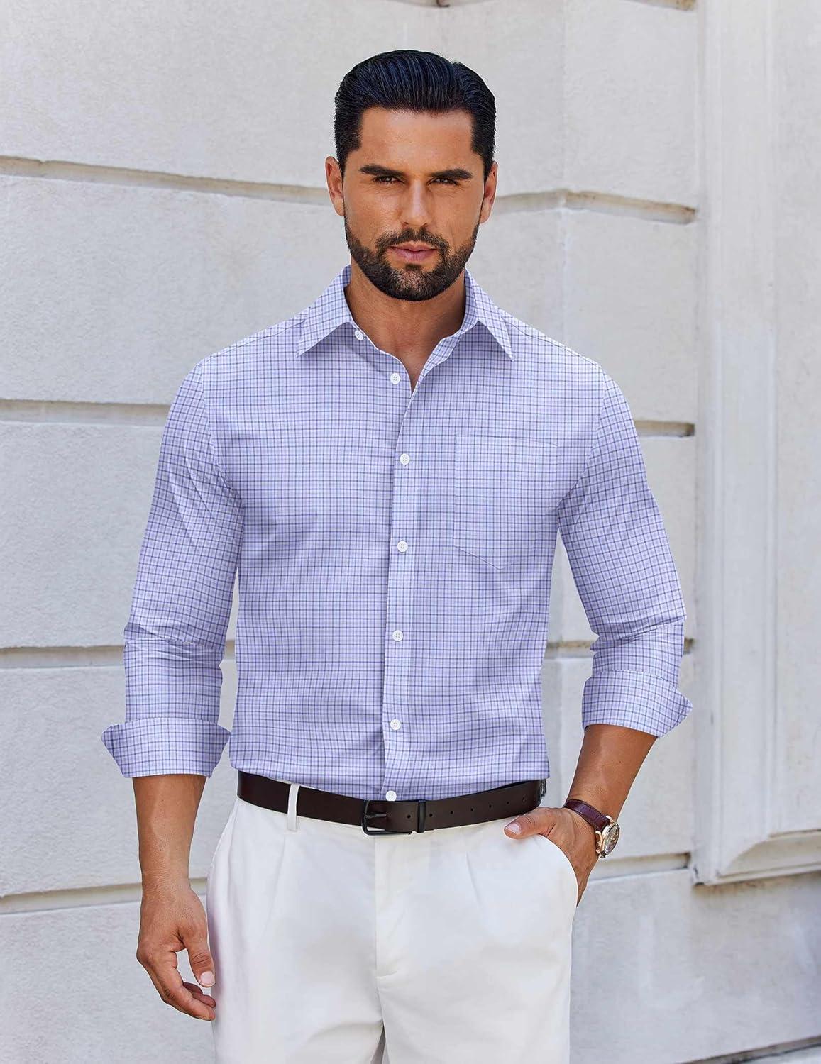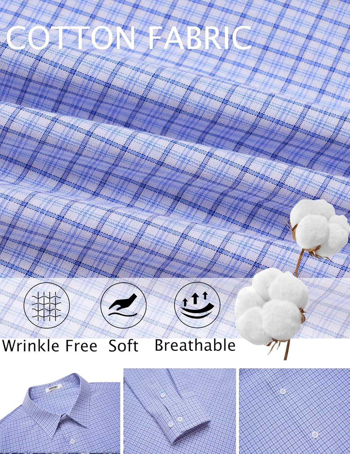 COOFANDY Men’s Long Sleeve Plaid Button Down Cotton Wrinkle Free Dress Shirt(Blue Plaid)