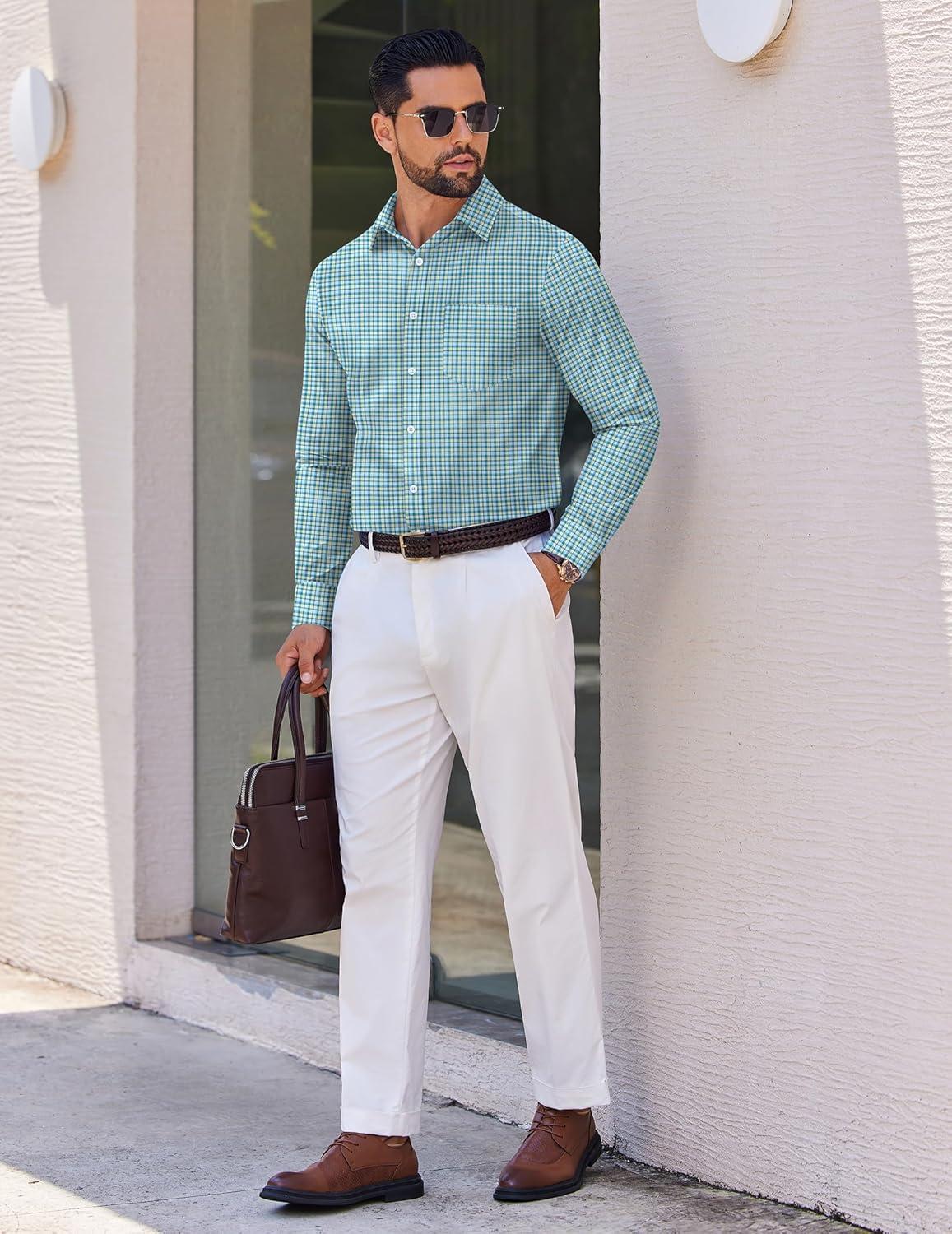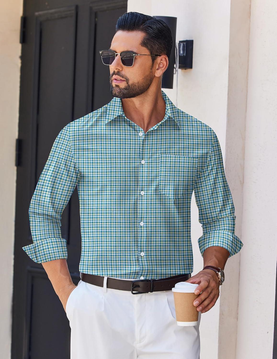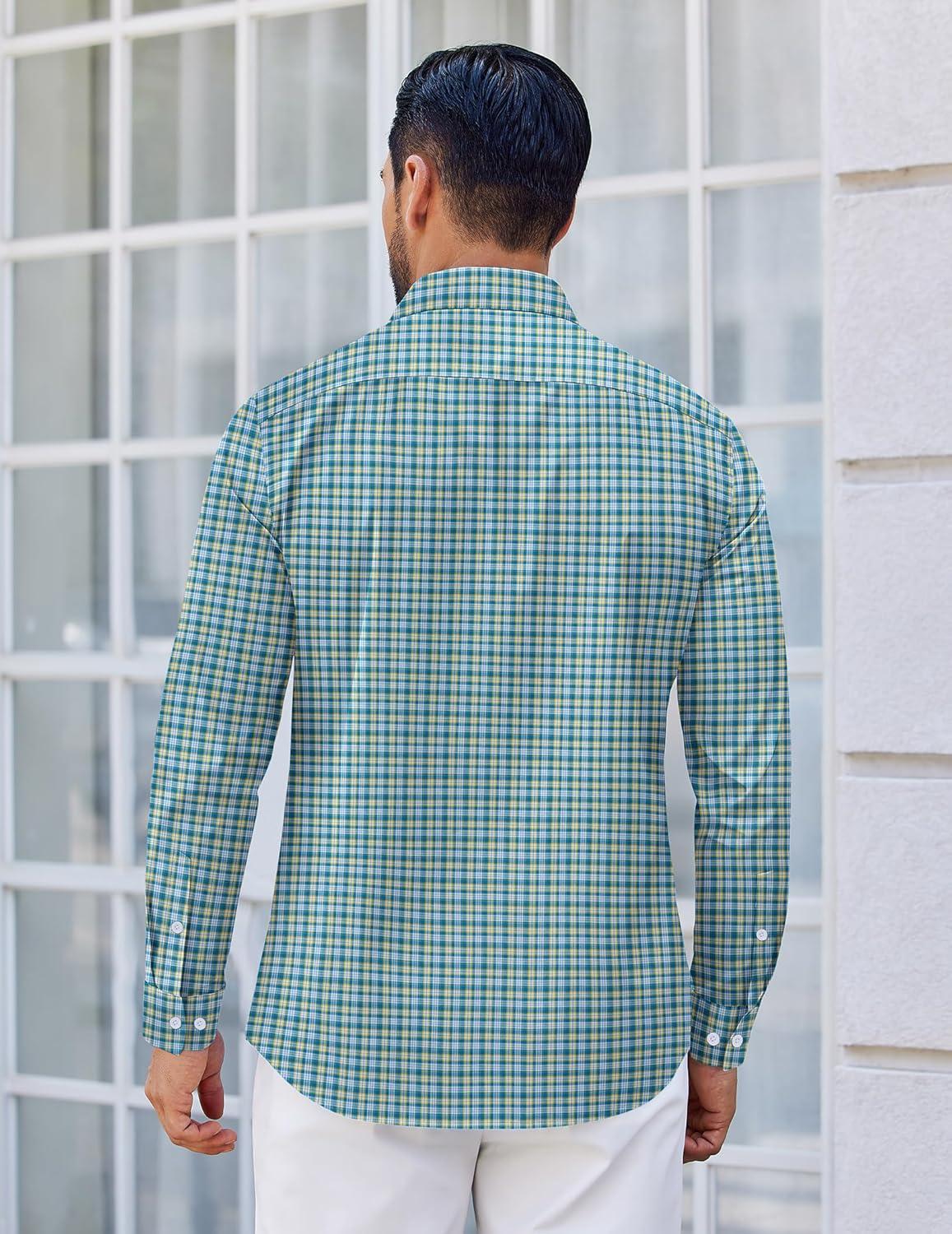 COOFANDY Men’s Long Sleeve Plaid Button Down Cotton Wrinkle Free Dress Shirt(Dark Green Plaid)