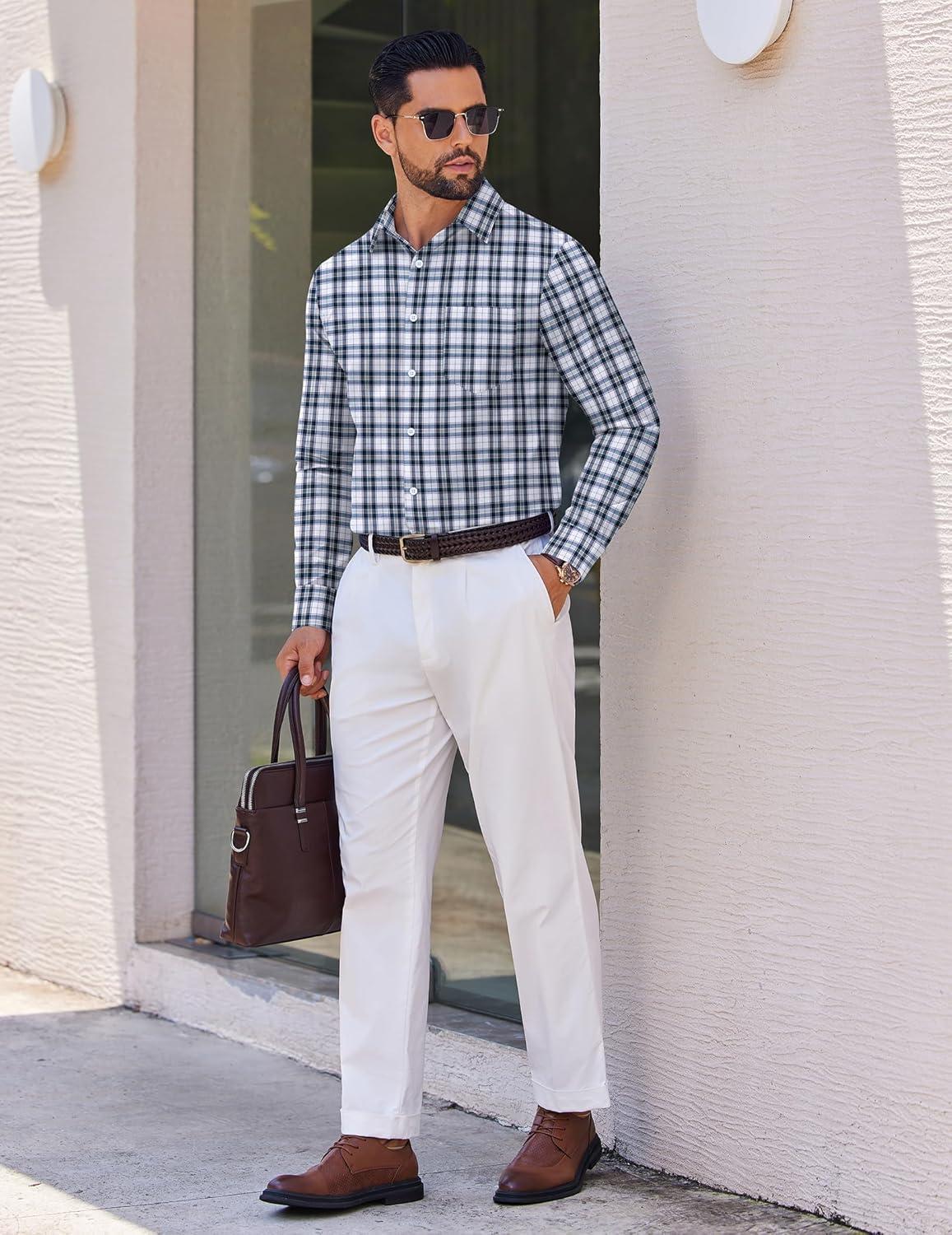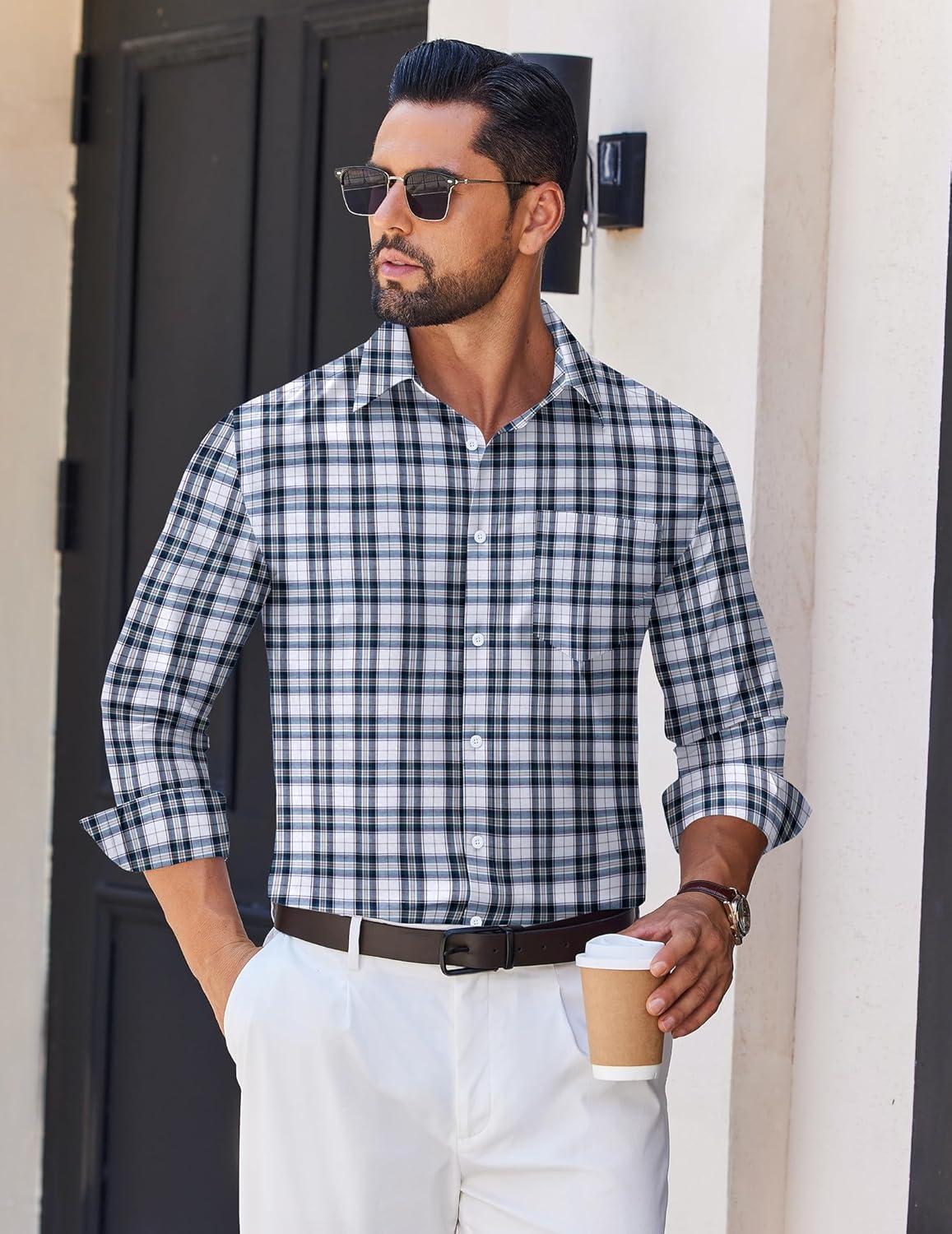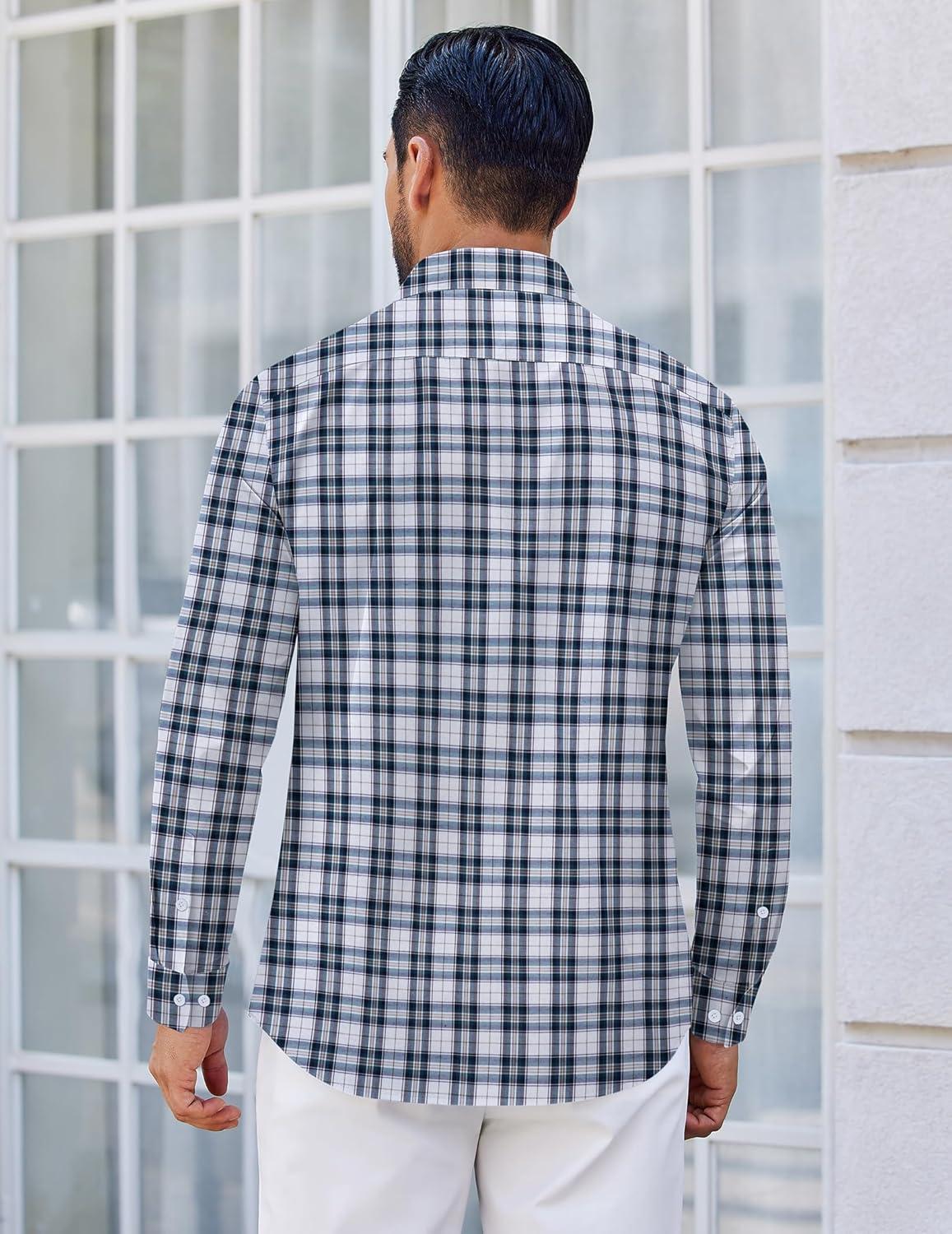 COOFANDY Men’s Long Sleeve Plaid Button Down Cotton Wrinkle Free Dress Shirt(Grey White Plaid)