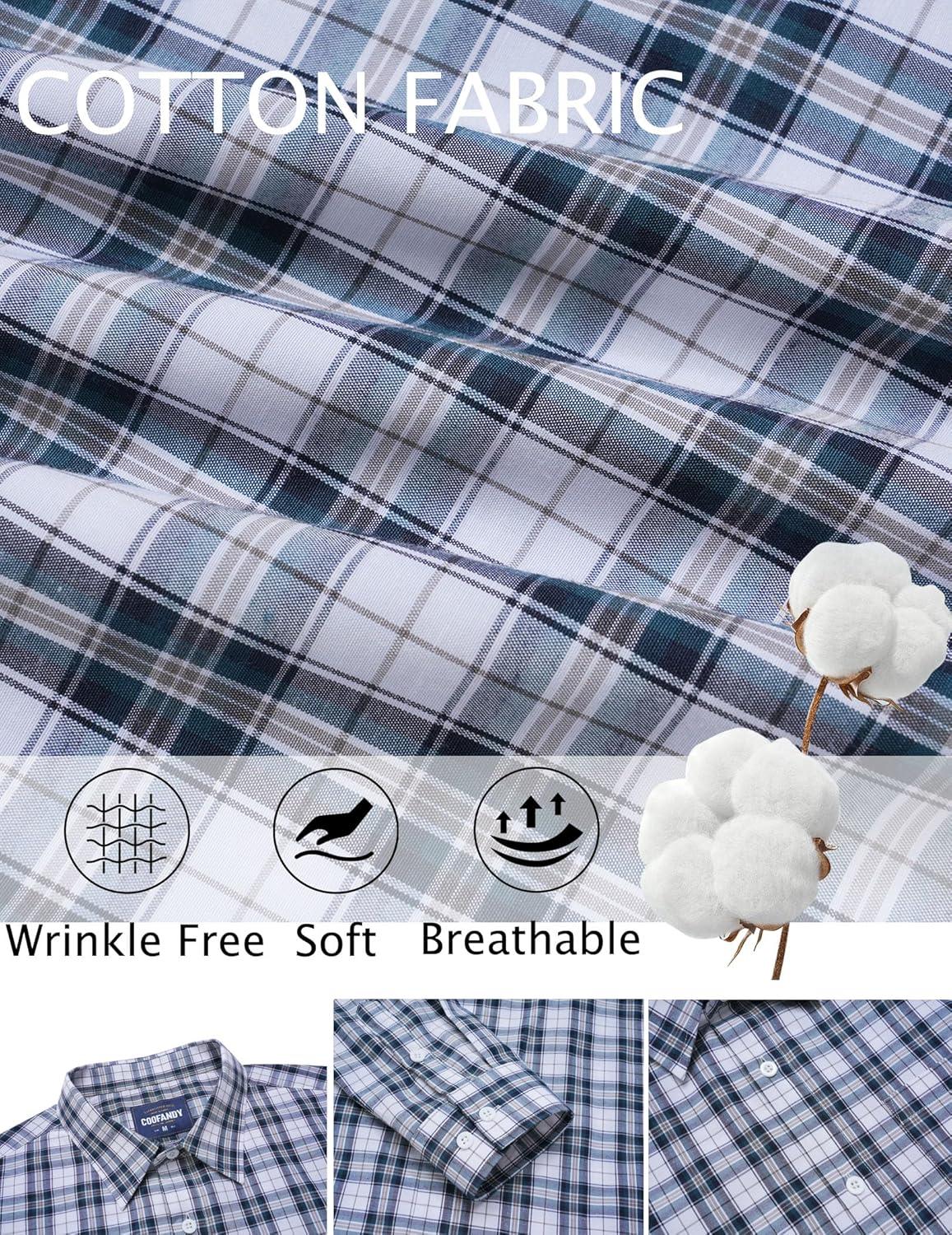 COOFANDY Men's Long Sleeve Plaid Button Down Cotton Wrinkle Free Dress Shirt(Dark Green Plaid)