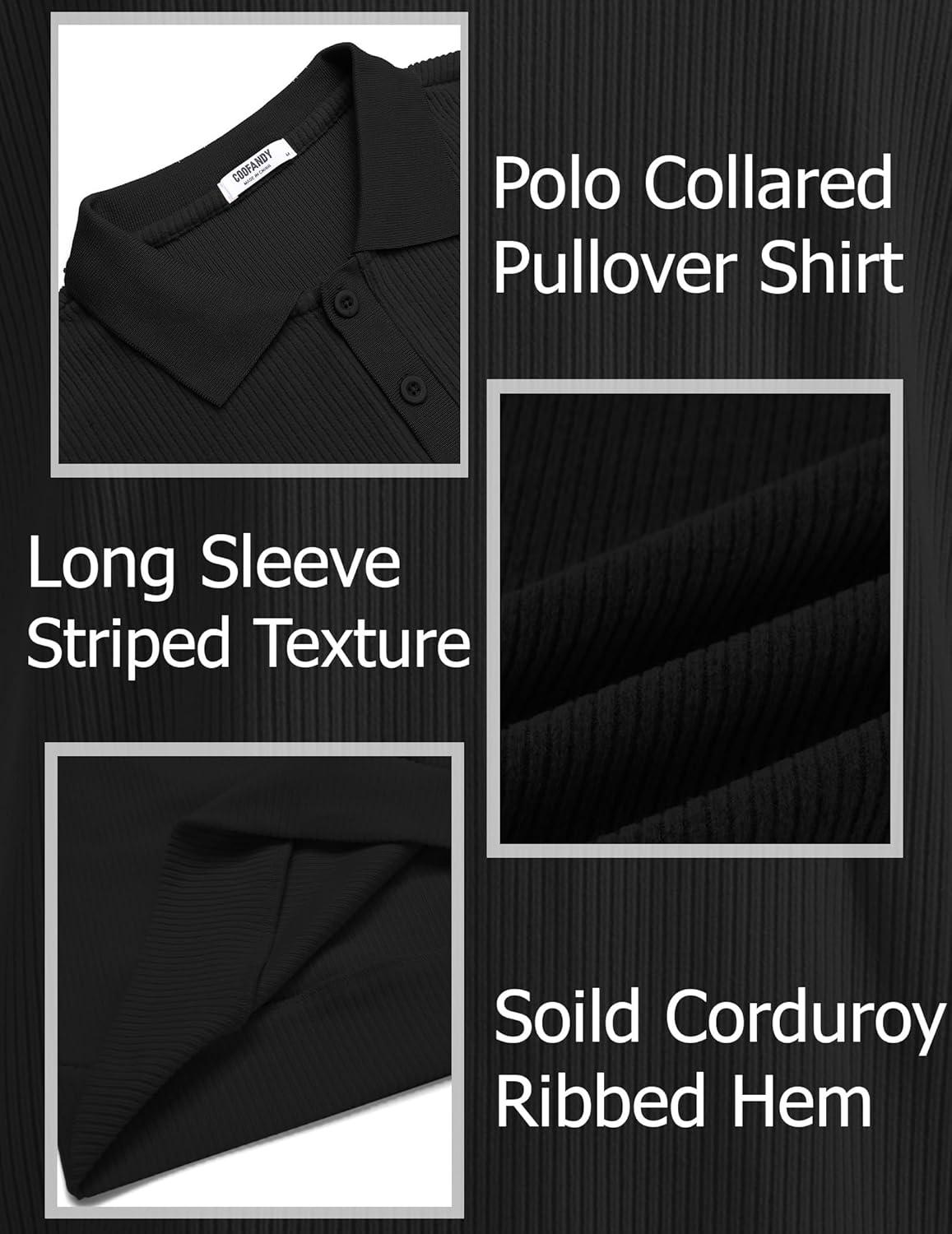 COOFANDY Mens Long Sleeve Polo Knit Polo Sweater Collared Pullover Casual Golf Polo Sweater(Black)