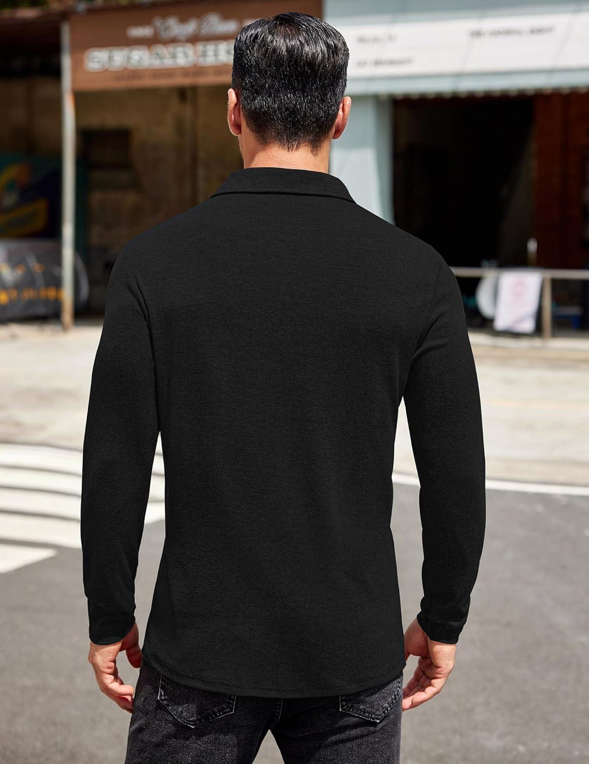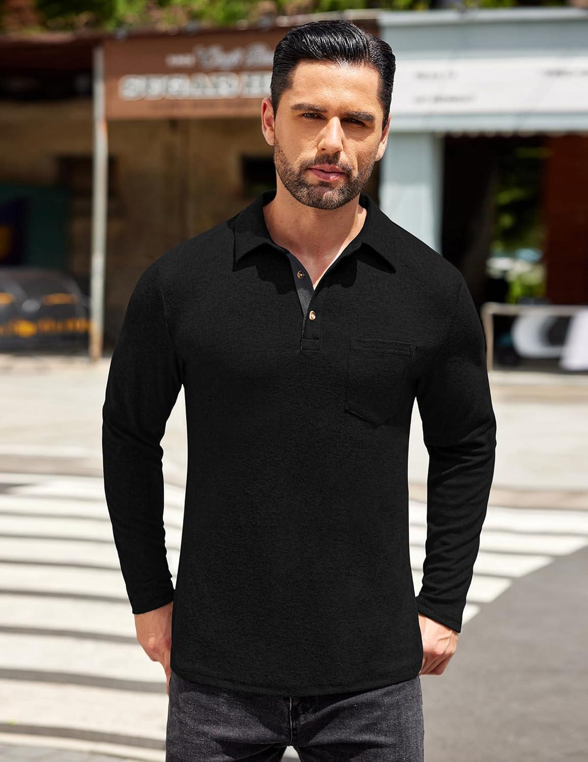 COOFANDY Men's Long Sleeve Polo Shirt Casual Dress Button Polo T Shirt with Pocket Basic Lightweight Collared Golf Shirt(Black)