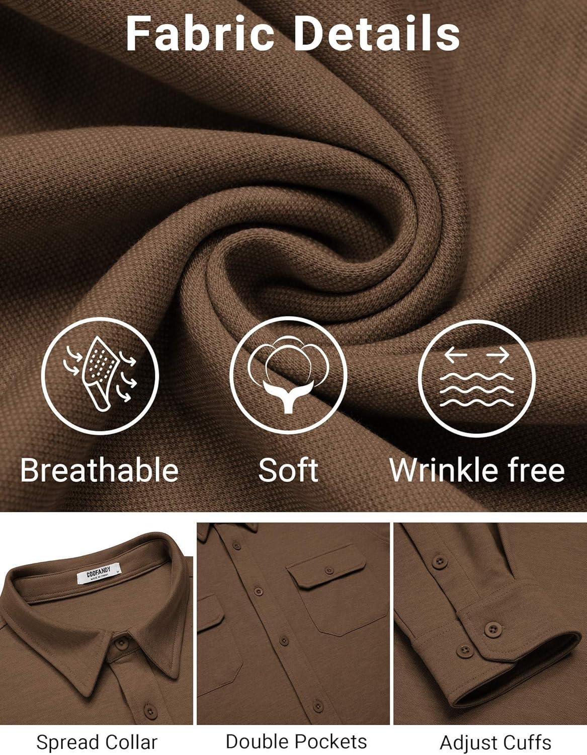 Get your hands on our newest COOFANDY Mens Long Sleeve Shirts Casual Button Down Shirt Wrinkle Free Dress Shirt with Pocket(Brown) and enjoy a limited-time discount offer.
