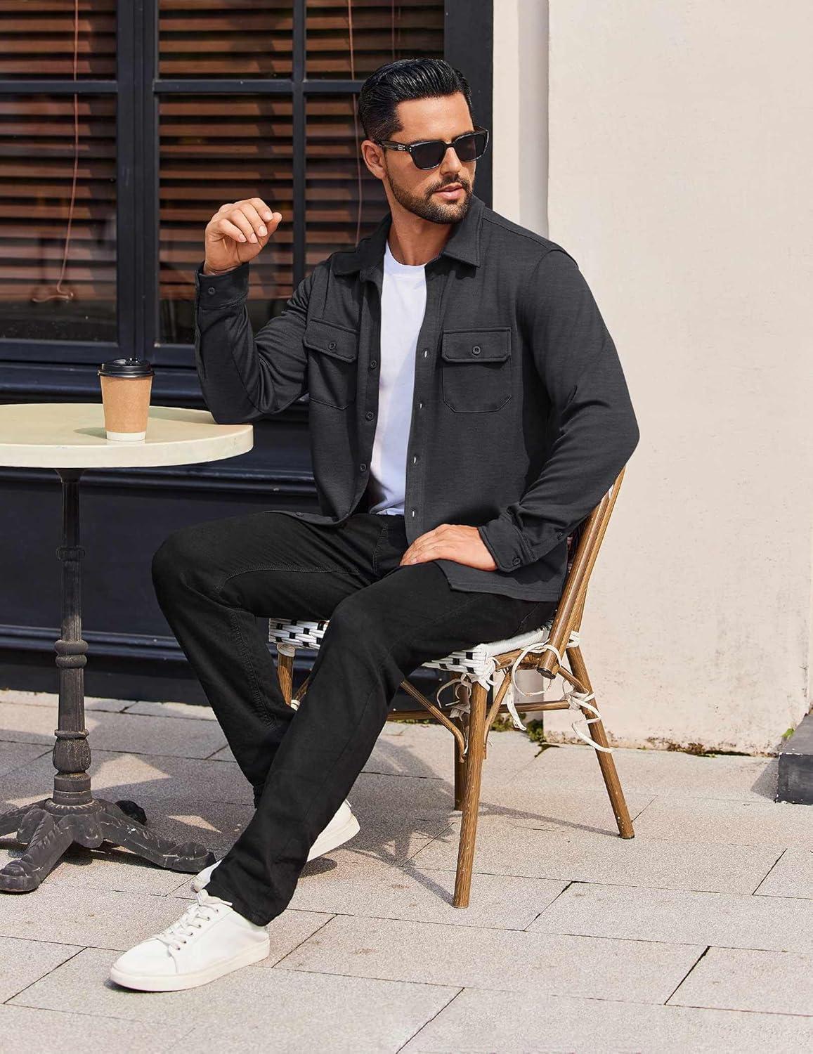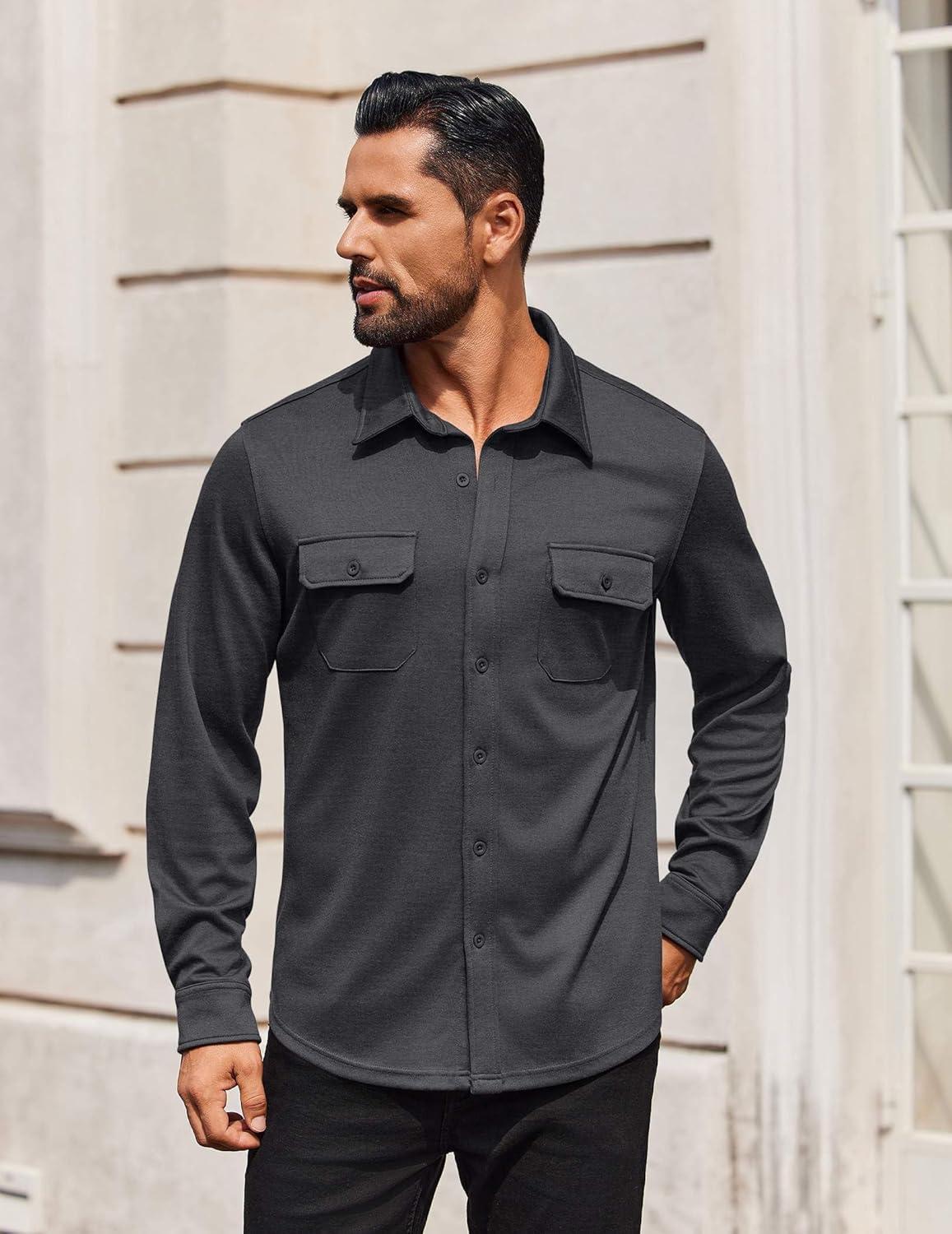 COOFANDY Mens Long Sleeve Shirts Casual Button Down Shirt Wrinkle Free Dress Shirt with Pocket(Dark Grey)