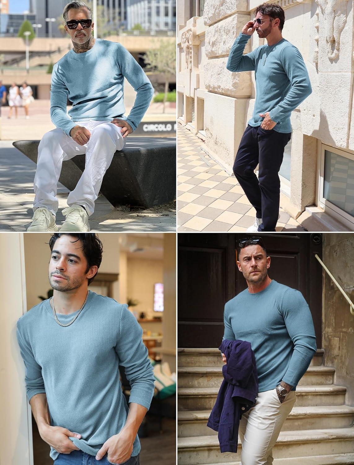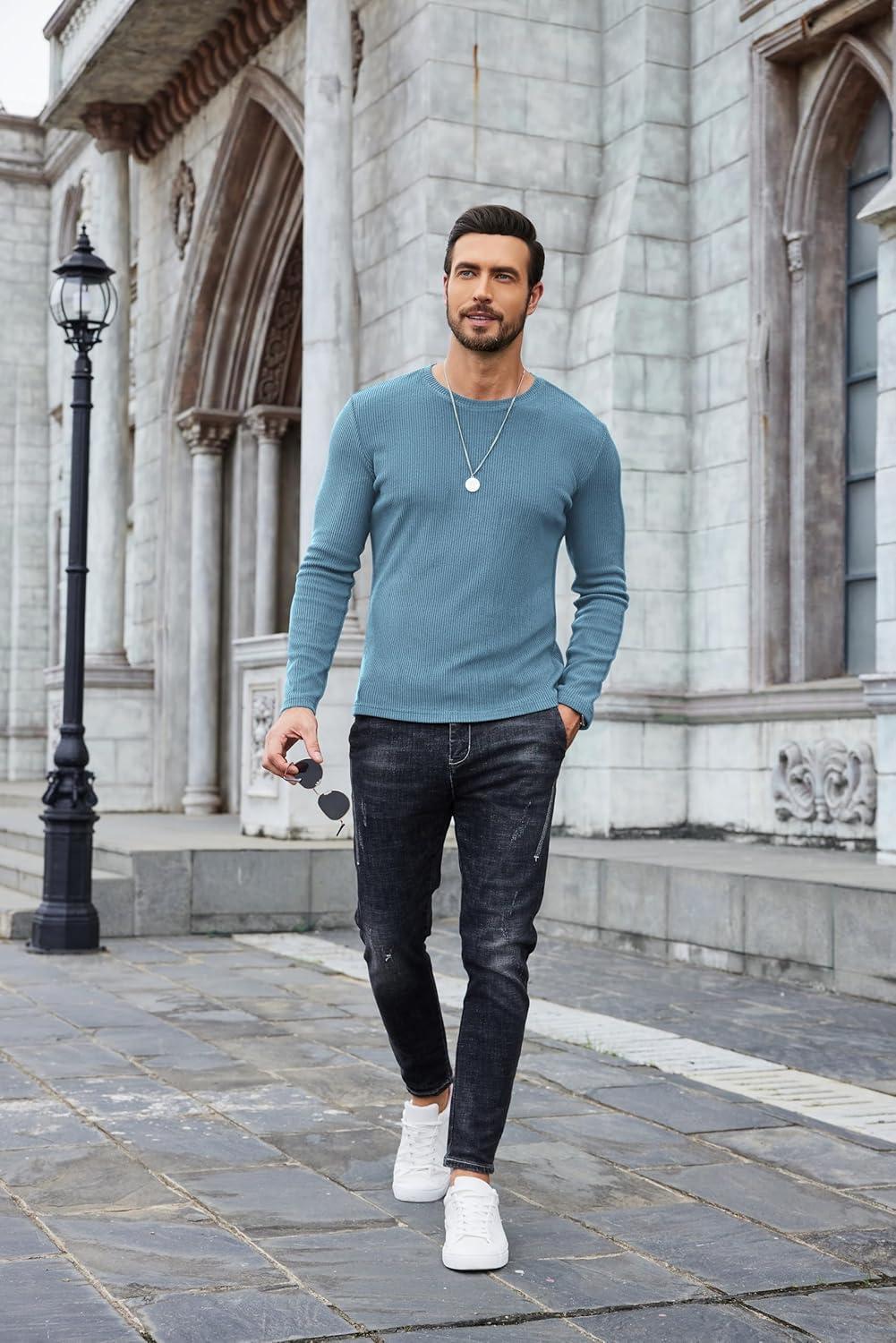 COOFANDY Mens Long Sleeve Shirts Thermal T-Shirt Slim Fit Crewneck Sweater Knitted Pullover Shirt(Dark Grey)