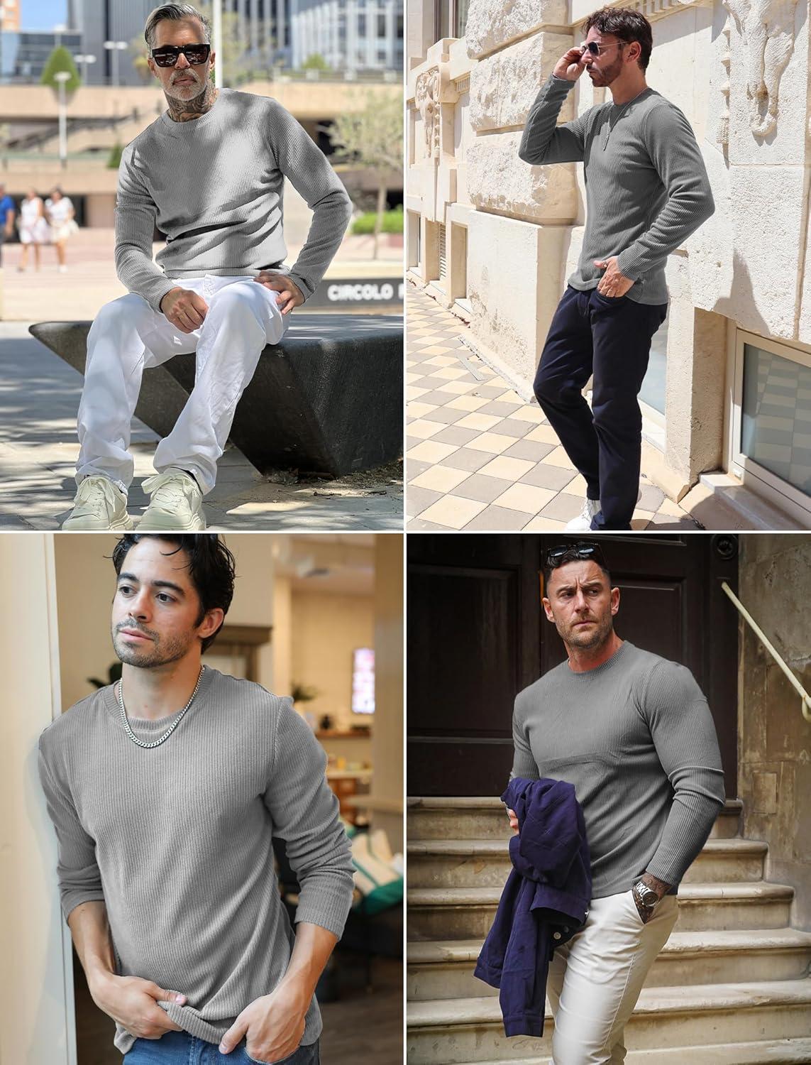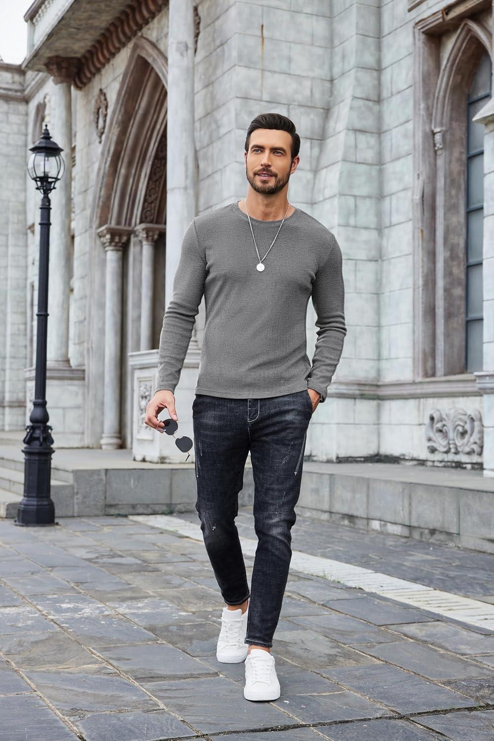 COOFANDY Mens Long Sleeve Shirts Thermal T-Shirt Slim Fit Crewneck Sweater Knitted Pullover Shirt(Grey)