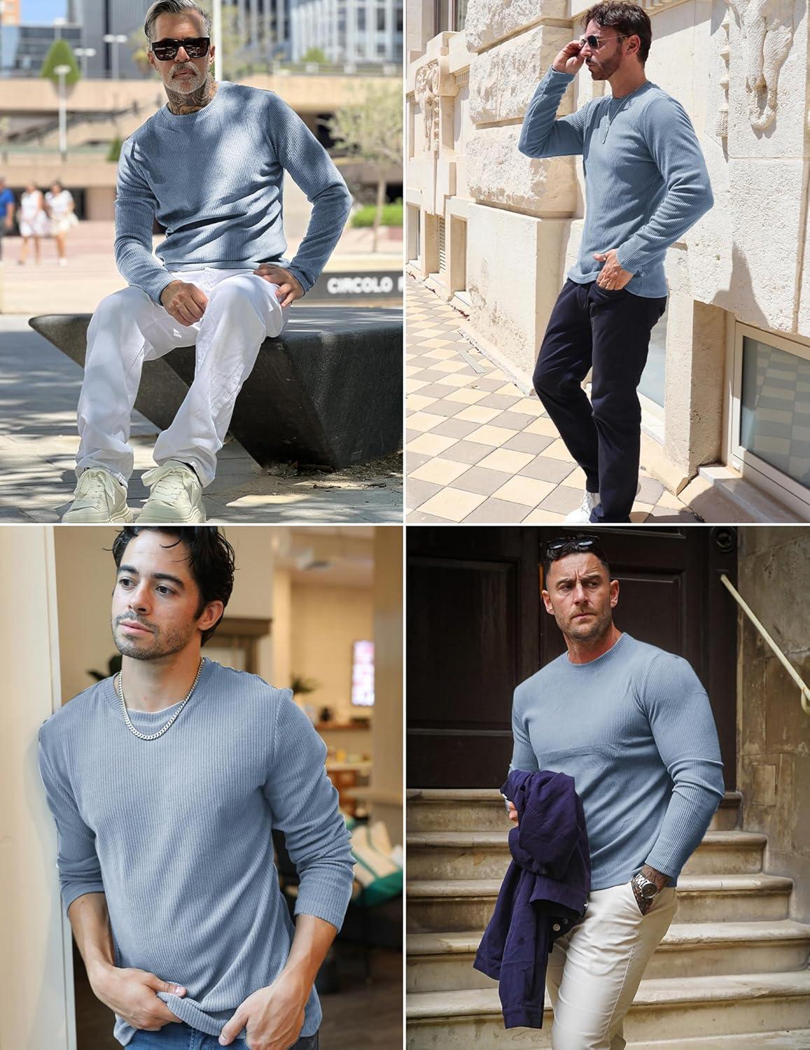 COOFANDY Mens Long Sleeve Shirts Thermal T-Shirt Slim Fit Crewneck Sweater Knitted Pullover Shirt(Light Blue)