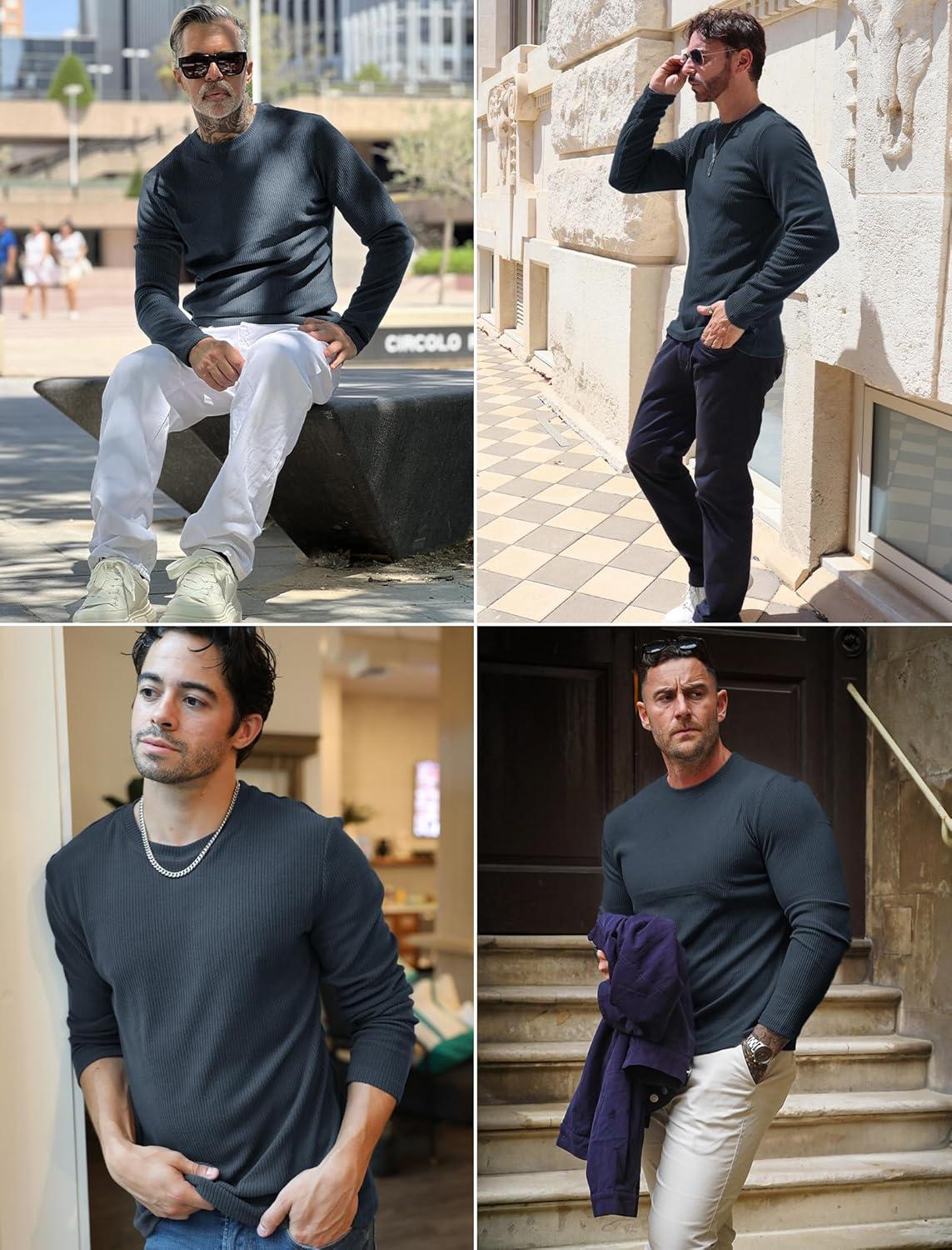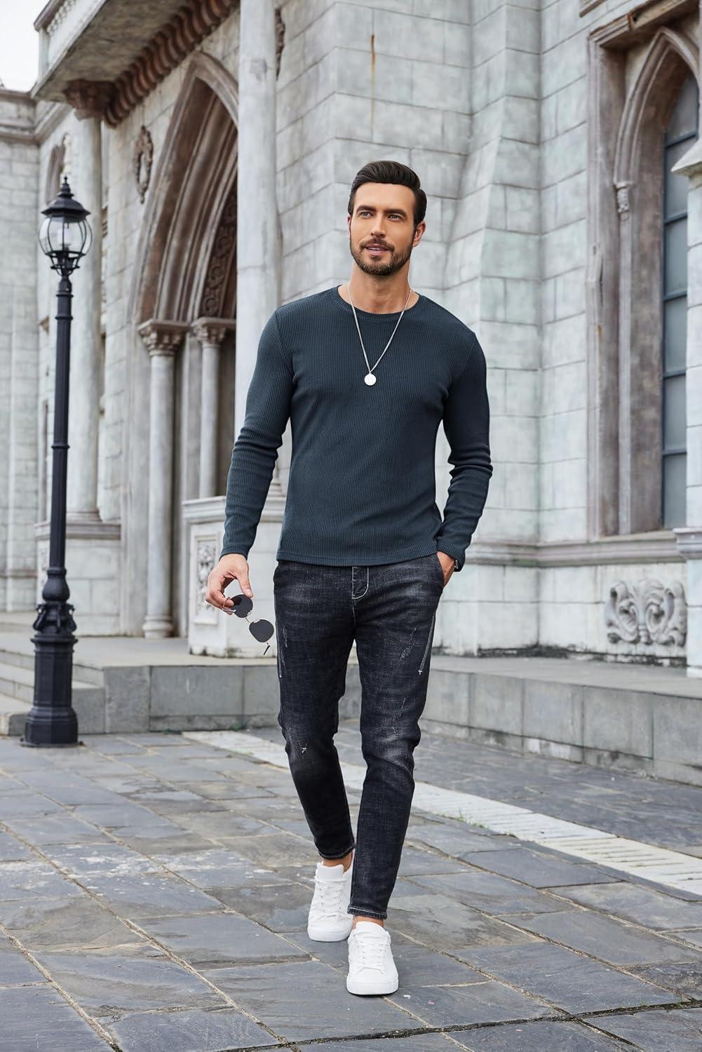 COOFANDY Mens Long Sleeve Shirts Thermal T-Shirt Slim Fit Crewneck Sweater Knitted Pullover Shirt(Navy)
