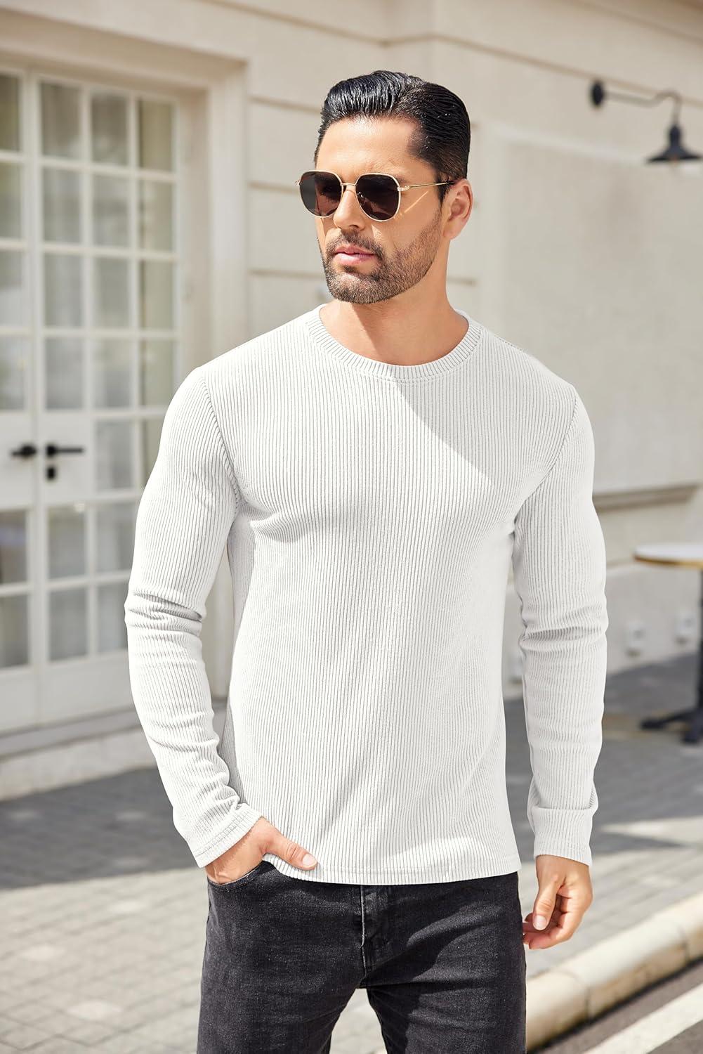COOFANDY Mens Long Sleeve Shirts Thermal T-Shirt Slim Fit Crewneck Sweater Knitted Pullover Shirt(White)