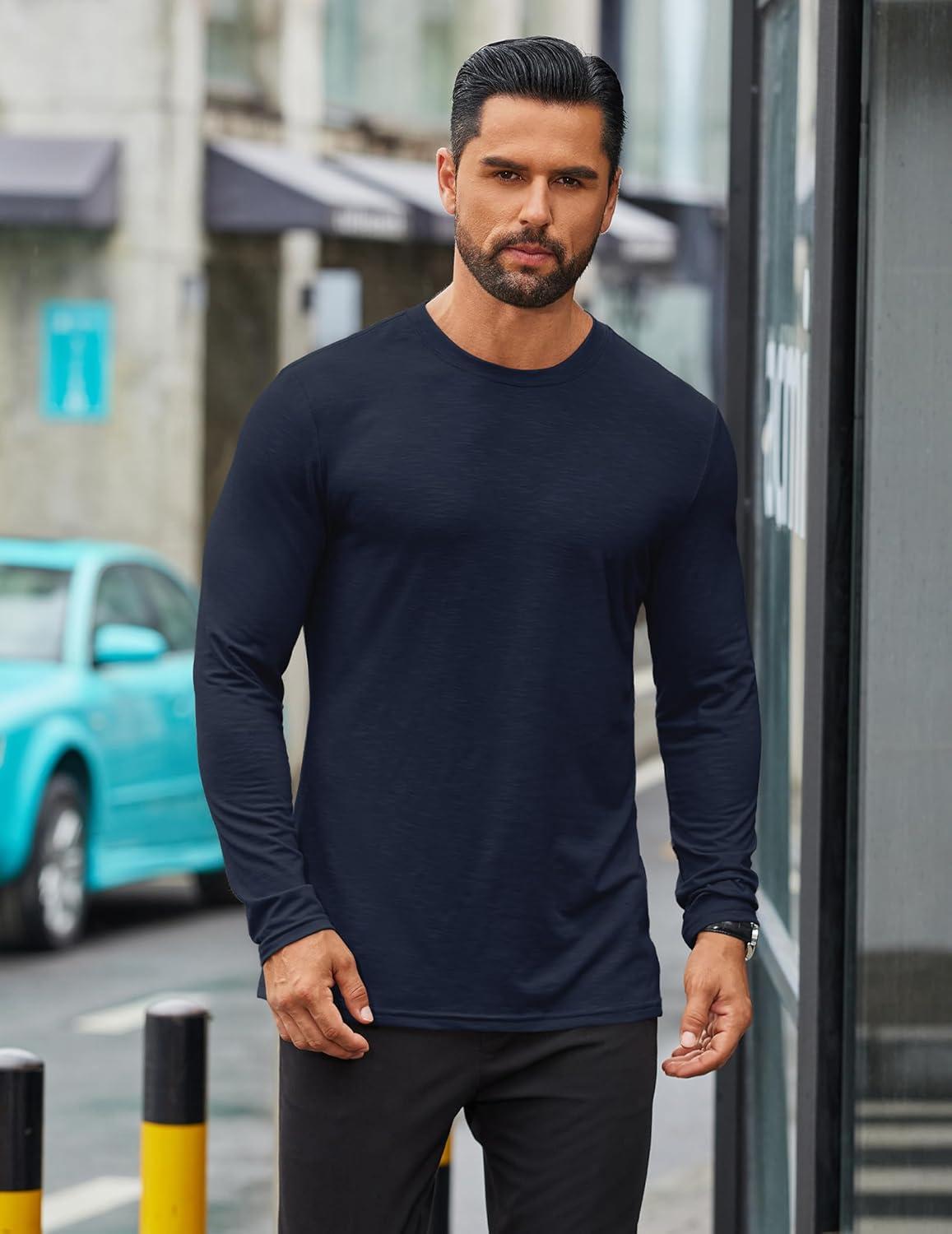 COOFANDY Mens Long Sleeve T Shirts Casual Crew Neck Tee Shirts Lightweight Soft Pullover Tops(Navy Blue)