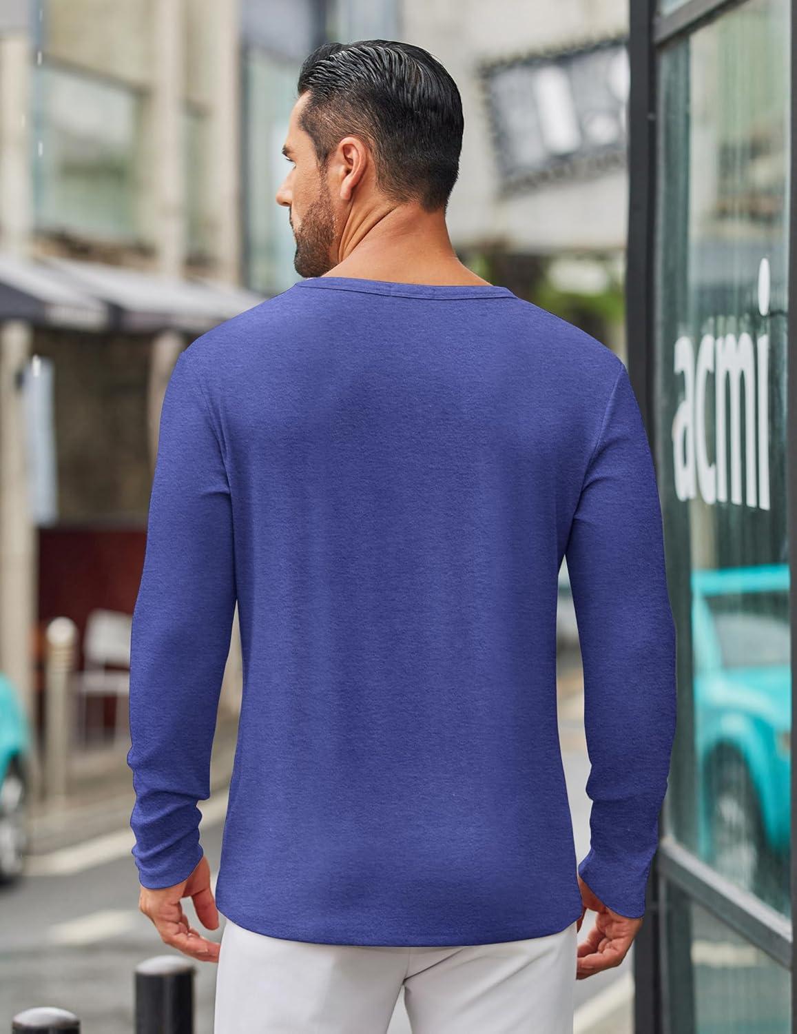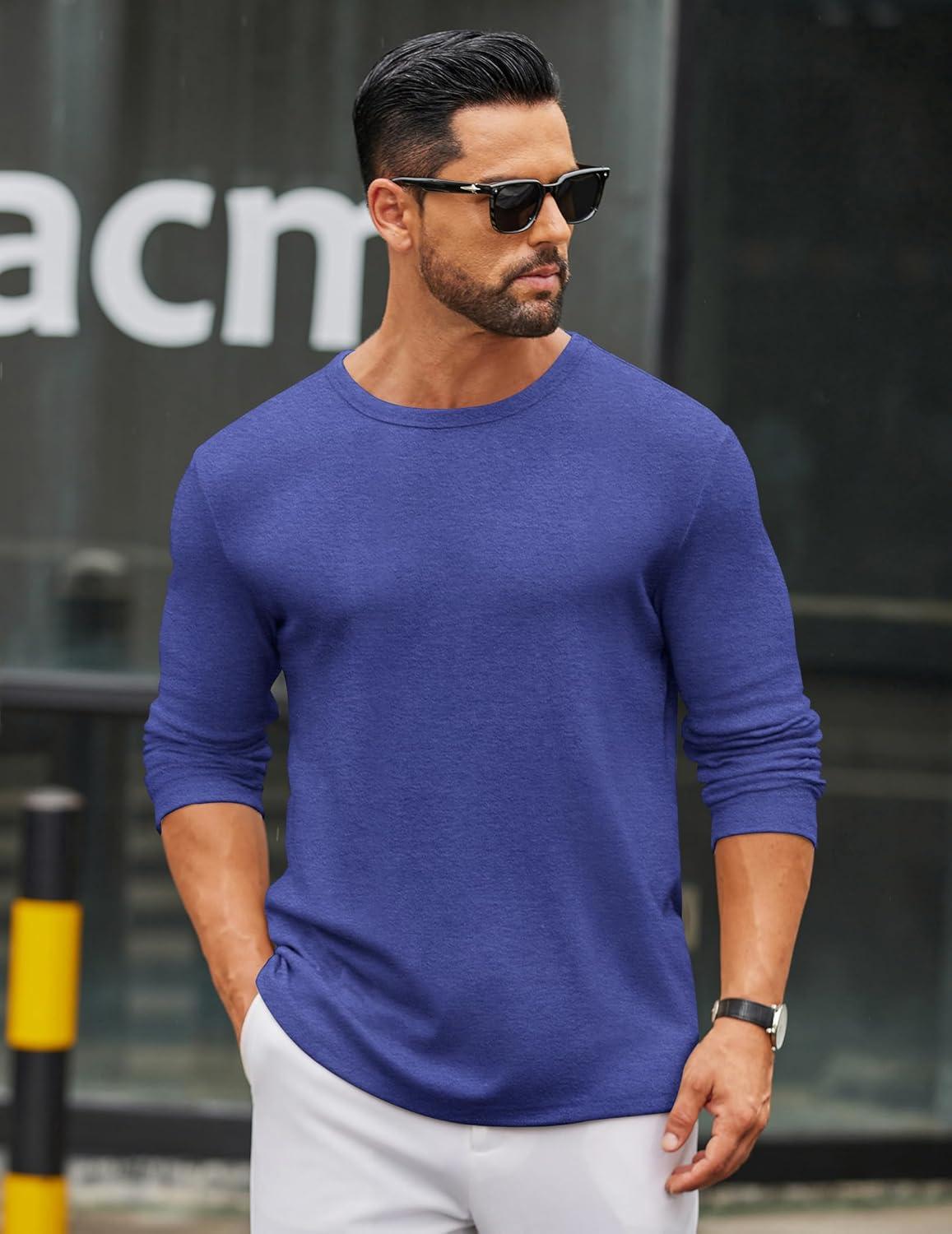 COOFANDY Men’s Long Sleeve Tee Shirts Crew Neck T Shirt Solid Casual Basic Tees Soft Stretch T-Shirts(Heather Blue)