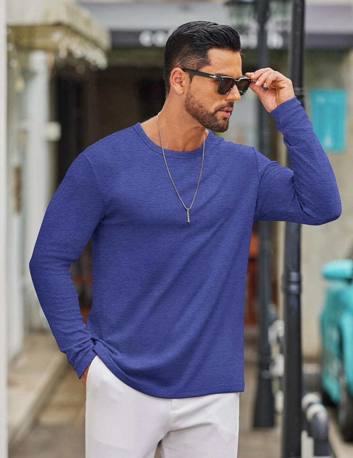 COOFANDY Mens Long Sleeve T Shirts Crew Neck Casual Basic Tee Shirt Lightweight Pullover Shirts(1 Pack-blue)