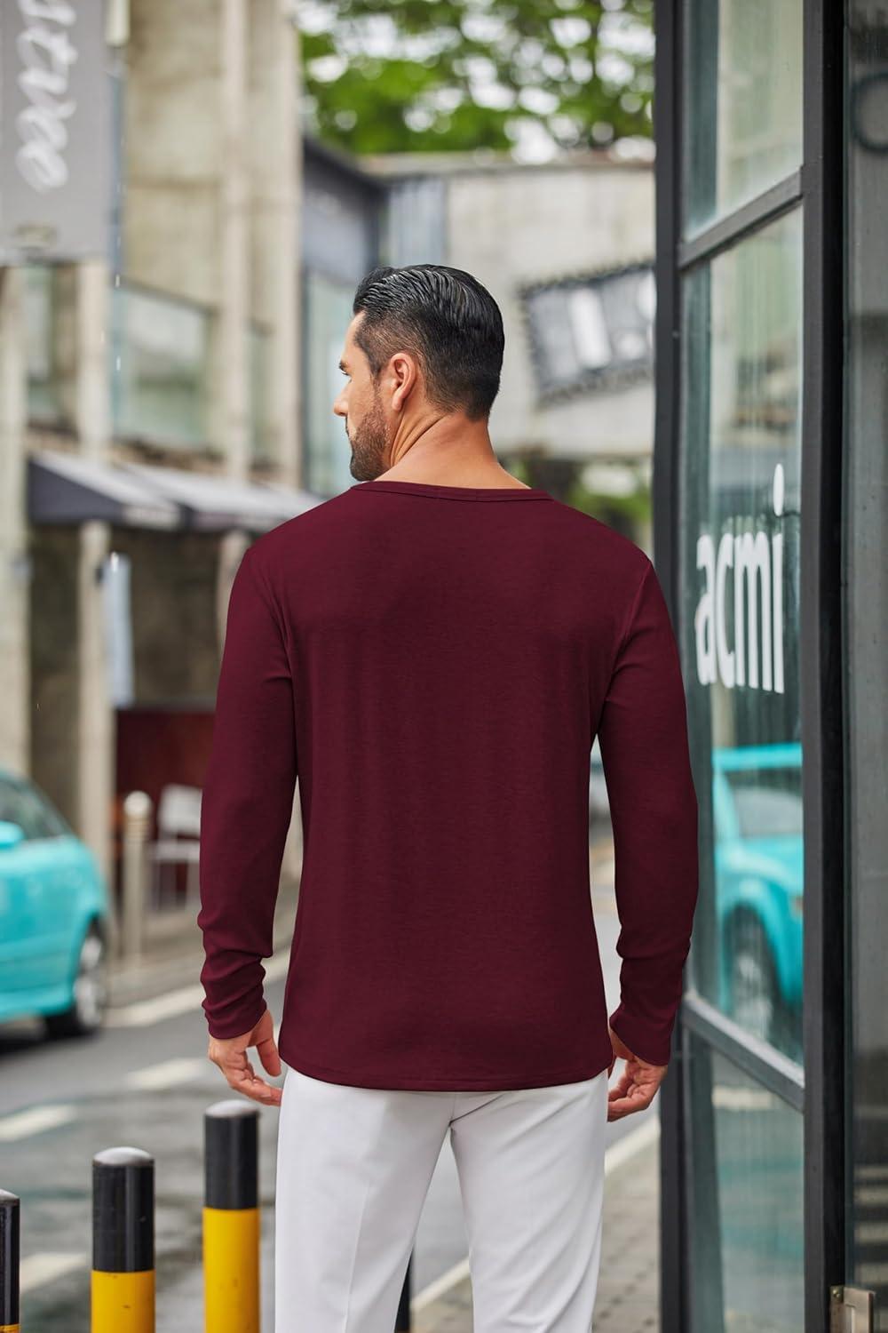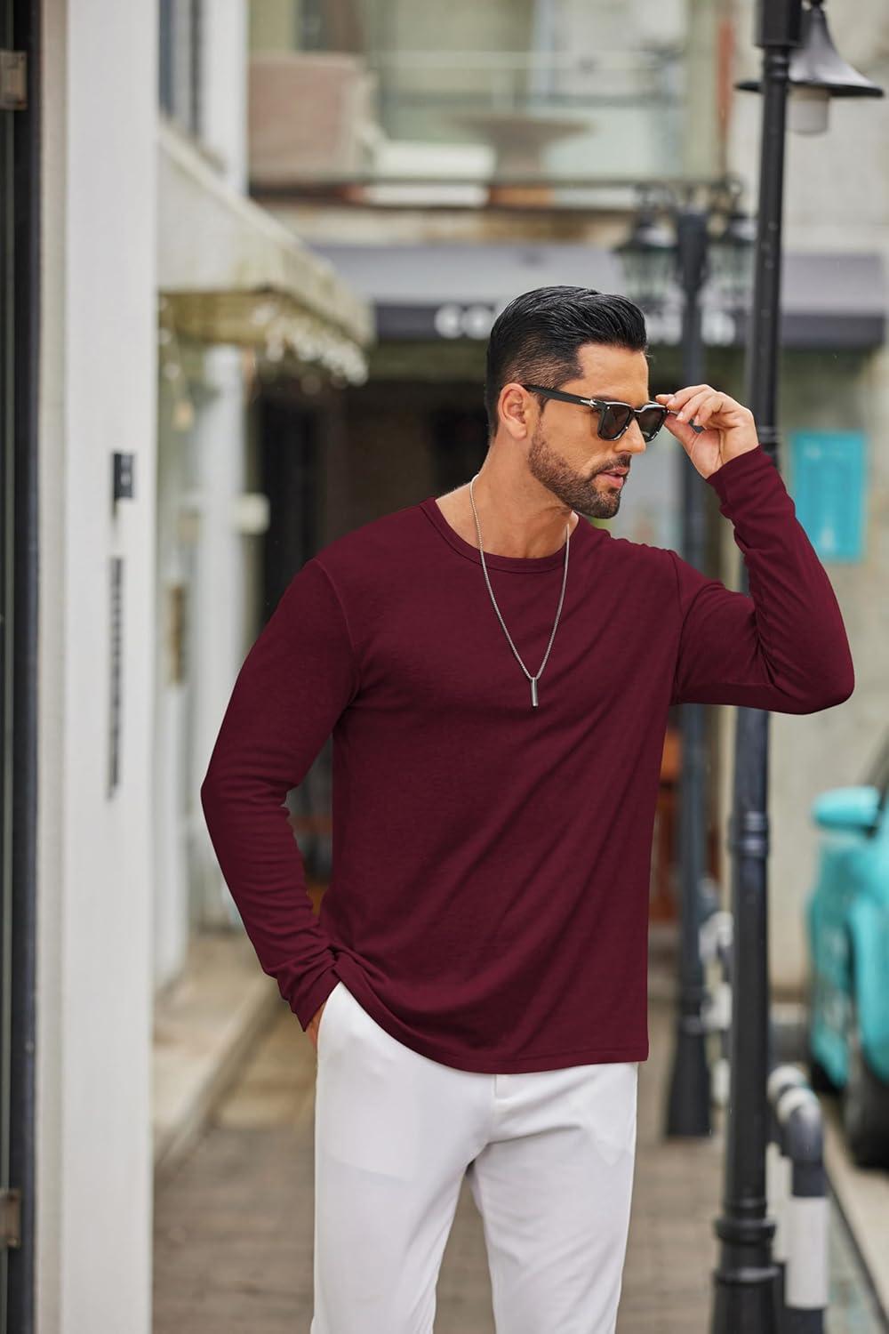 COOFANDY Men's Long Sleeve Tee Shirts Crew Neck T Shirt Solid Casual Basic Tees Soft Stretch T-Shirts(Heather Burgundy)