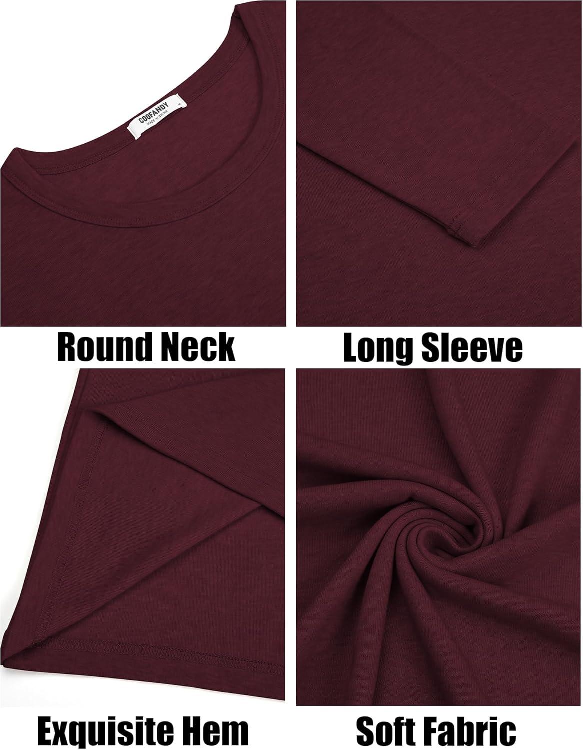 COOFANDY Men’s Long Sleeve Tee Shirts Crew Neck T Shirt Solid Casual Basic Tees Soft Stretch T-Shirts(Heather Burgundy)