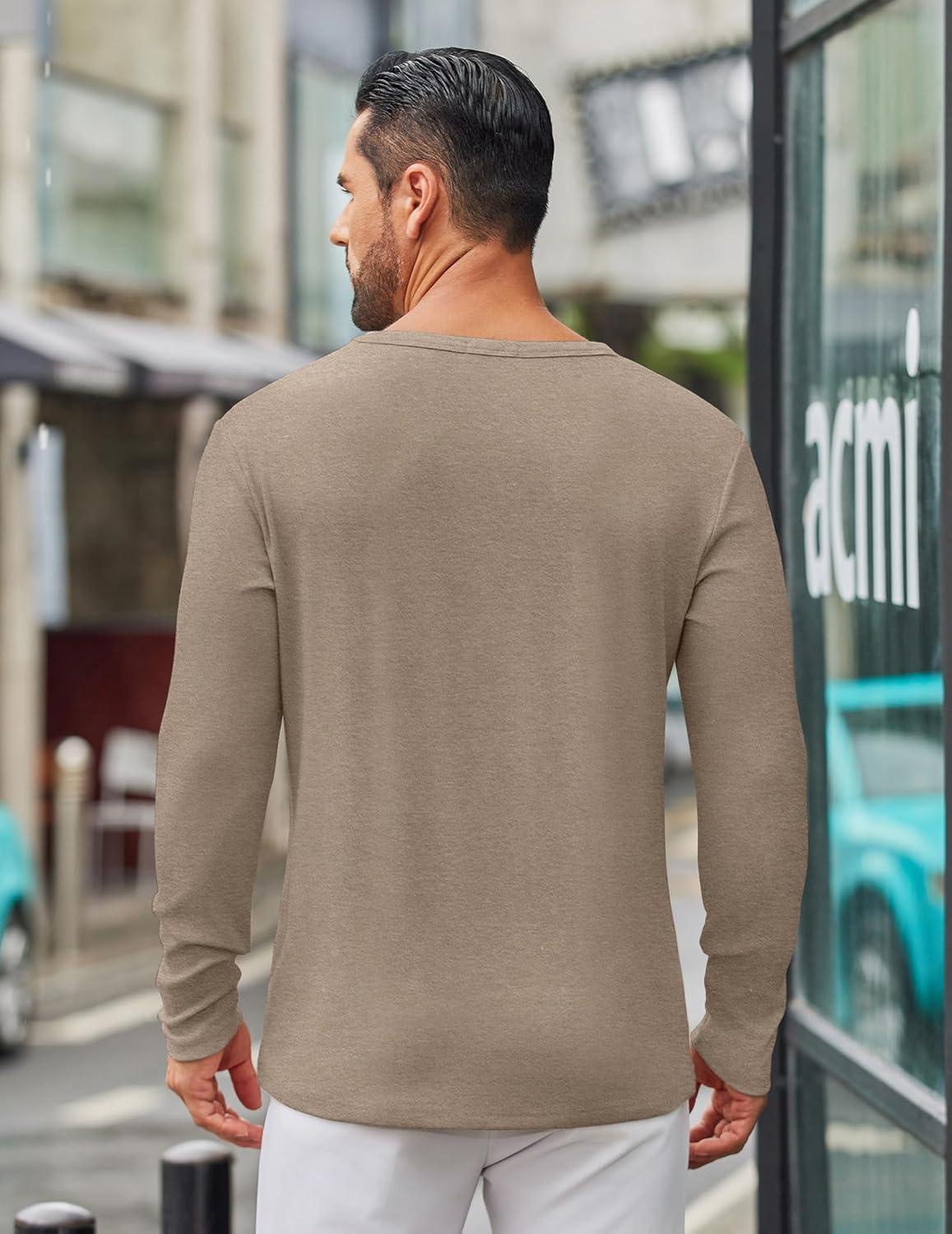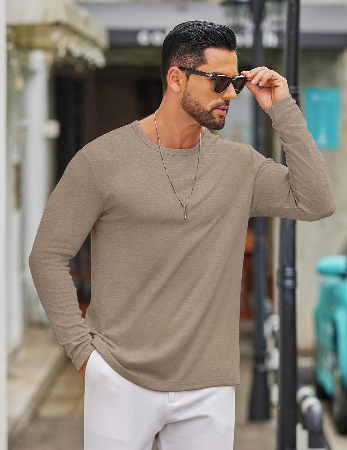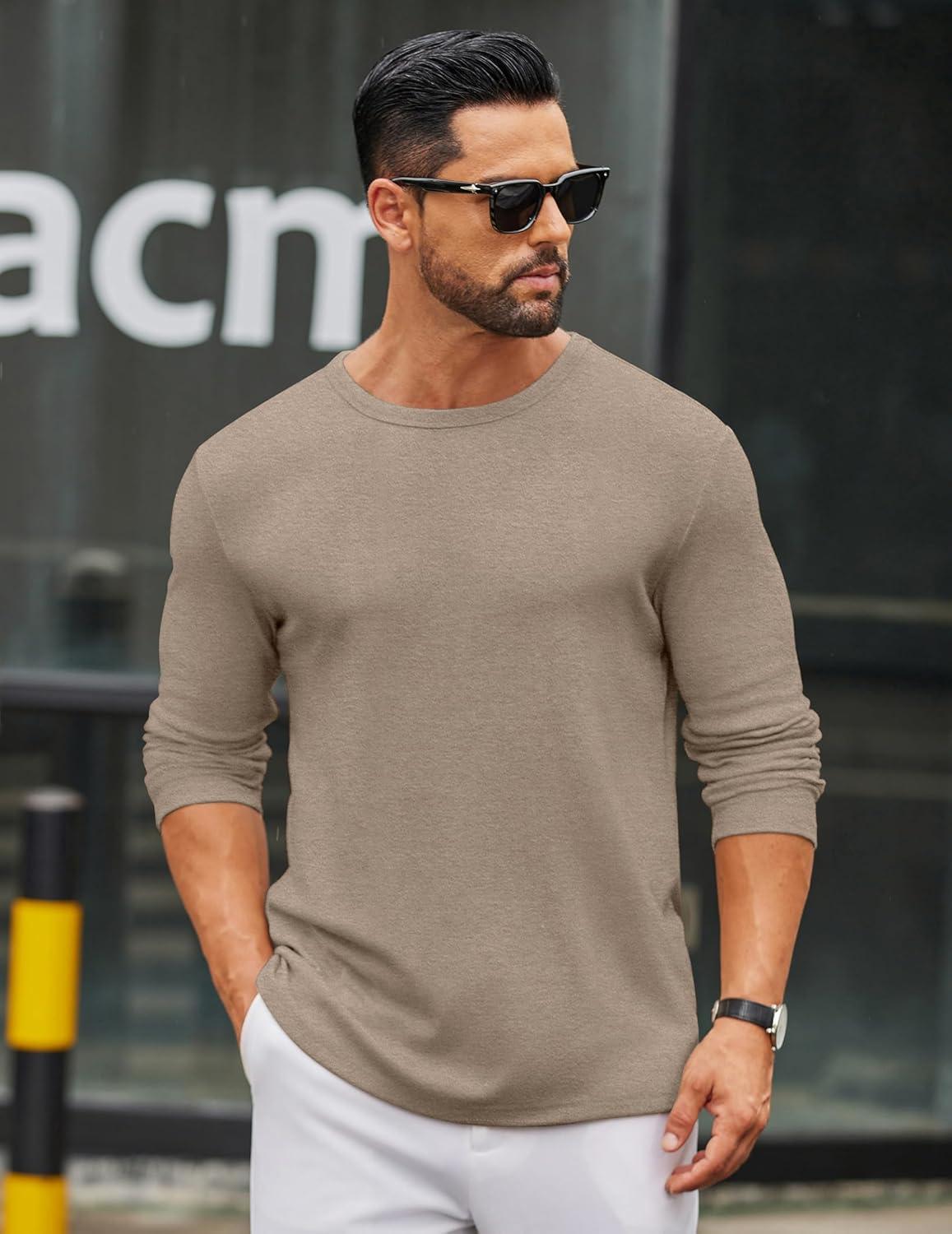 COOFANDY Men's Long Sleeve Tee Shirts Crew Neck T Shirt Solid Casual Basic Tees Soft Stretch T-Shirts(Khaki)