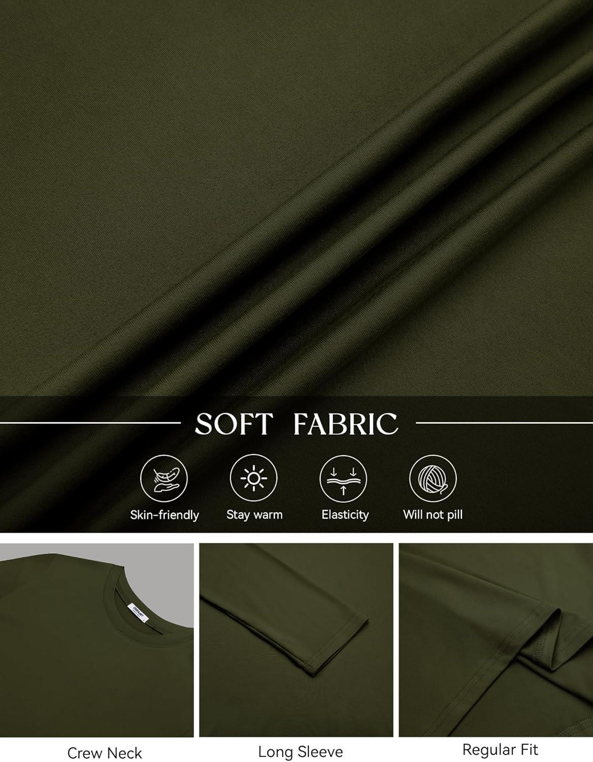 COOFANDY Mens Long Sleeve Tee Shirts Stretch Crew Neck Thermal Shirts Casual T Shirts for Men(Dark Army Green)